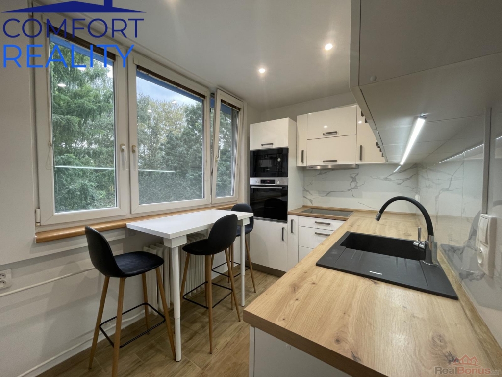 Dobrý den, dovoluji si Vám exkluzivně zprostředkovat dlouhodobý nájem prostorného bytu s dispozicí 3 + 1 s balkonem o výměře cca 71,53 m2, nacházející se v 2.patře bytového domu s výtahem v Ostravě Hrabůvce na ul.Mjr.Nováka. Originálně řešený byt po modernizaci se zasklenou lodžií. Byt je tvořen prostorným obývacím pokojem, kuchyní, dvěmi neprůchozími místnosti, předsíní, koupelnou, samostatným WC a prostornou komorou. Nový interiér, ve výborném stavu, po nákladné, moderní a promyšlené modernizaci před cca 1,5 rokem. Byt je vybaven kuchyňskou linkou s vestavěnými spotřebiči, šatní skříní v pokoji a úložnou skříní v předsíni. Okna bytu jsou orientována na dvě strany (východ a západ). Atraktivní nabídka dlouhodobého bydlení u výborného majitele. Rezervujte si možnou prohlídku.