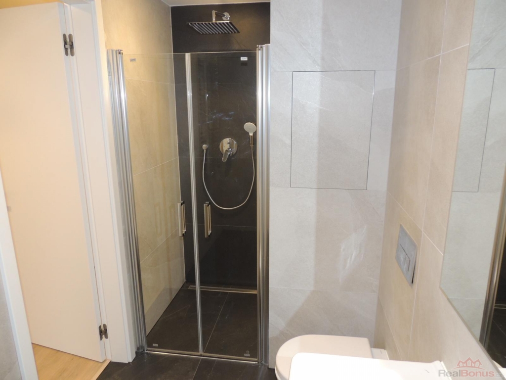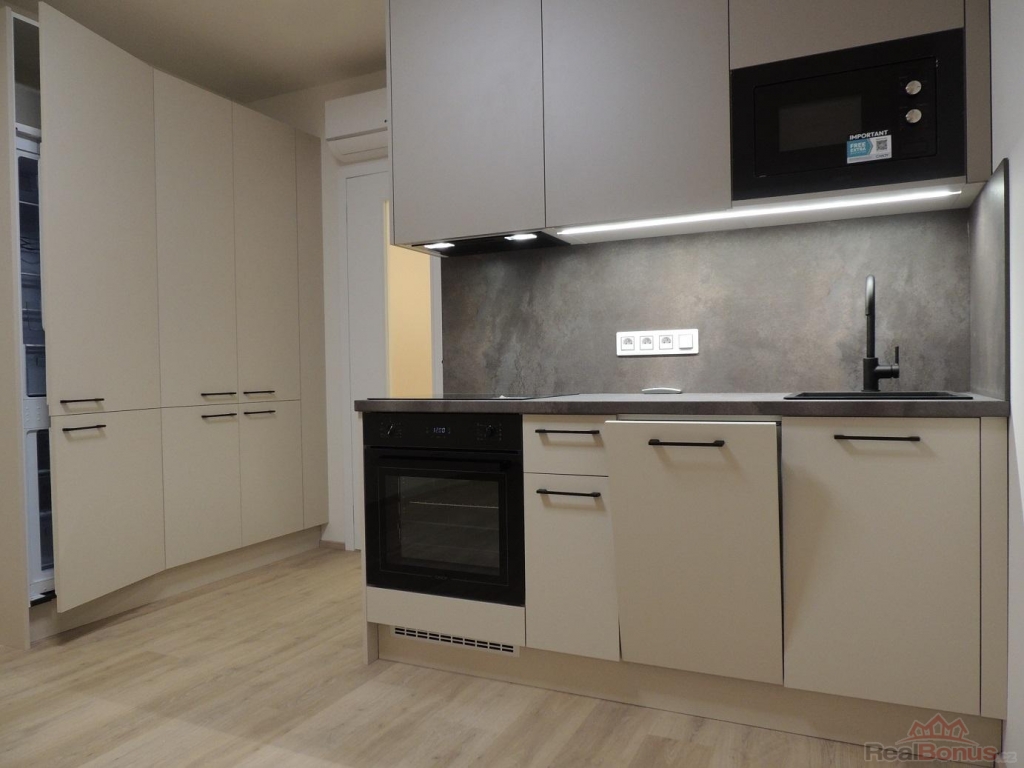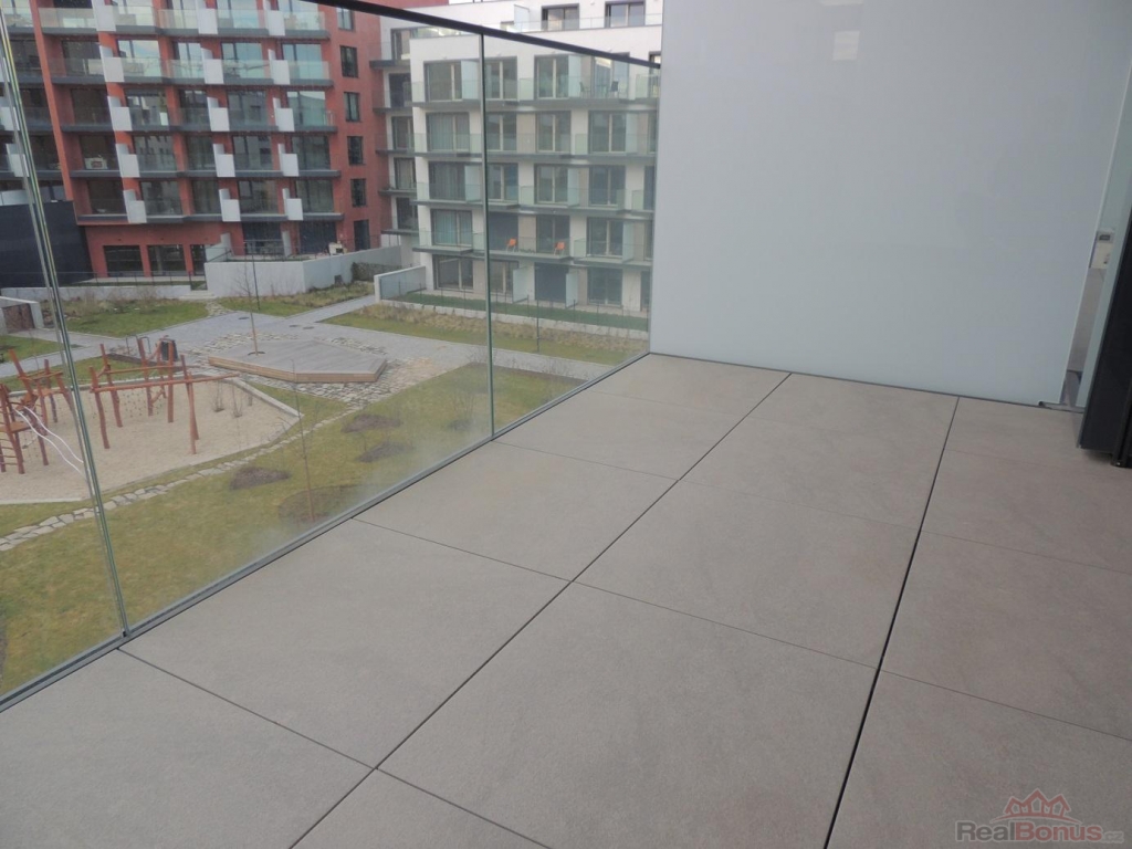 Nabízíme pronájem nového bytu s nadstandardním vybavením a dispozicí 1+kk 33,5 m2 a balkonem 6 m2 v novostavbě Rezidence Parková čtvrť na Praze 3 - Žižkově, ul. Šrámkové. Byt se nachází ve 3. nadzemním podlaží s výhledem do zeleného vnitrobloku. K vybavení interiéru patří klimatizace, rekuperace, elektrické předokenní rolety s dálkovým ovládáním, na oknech trojskla, bezpečnostní systém Jablotron, domovní videotelefon, vysokorychlostní internet, podlahové vytápění. V prostorném obývacím pokoji s plně vybaveným kuchyňským koutem na míru, je linka s vestavěnými spotřebiči - sklokeramická varná deska, el. trouba, myčka, lednice s mrazákem, mikrovlnka, digestoř. V koupelně využijete bezbariérový sprchový kout s relaxační sprchovou hlavicí, umyvadlo, toaletu a přípojku na pračku. V předsíni se nachází vestavná skříň s úložným prostorem a šatní stěnou, bezpečnostní vchodové dveře od fy. NEXT. V bytě je instalováno moderní úsporné osvětlení.