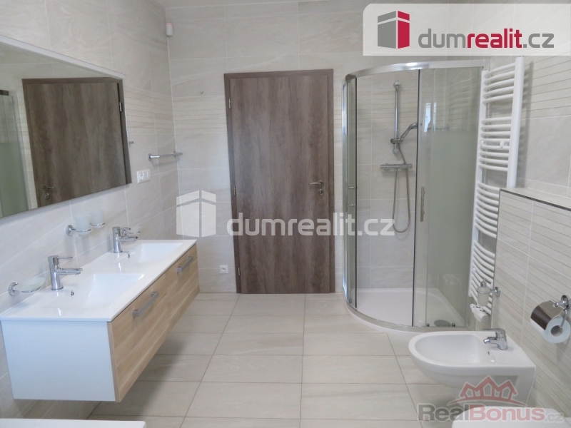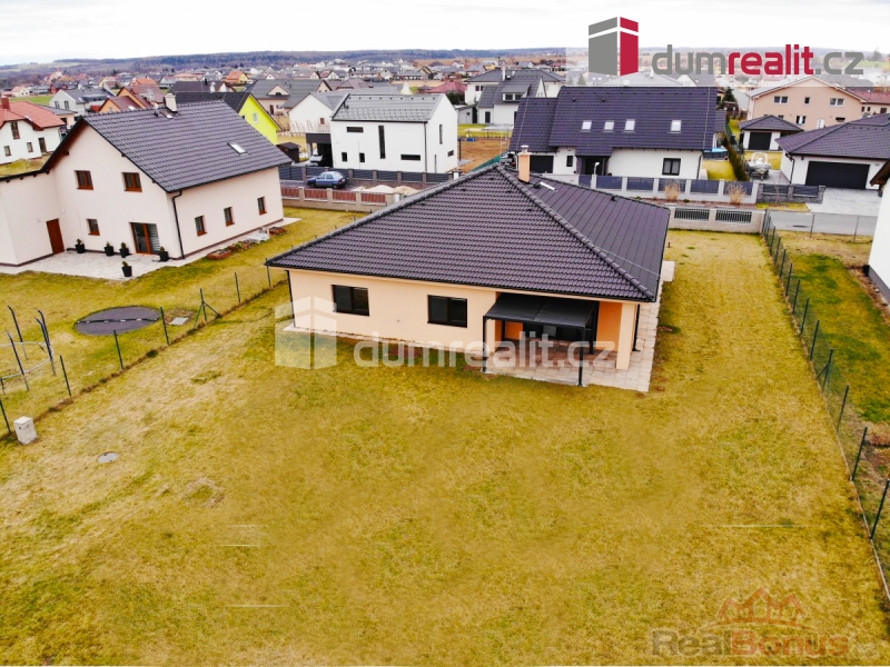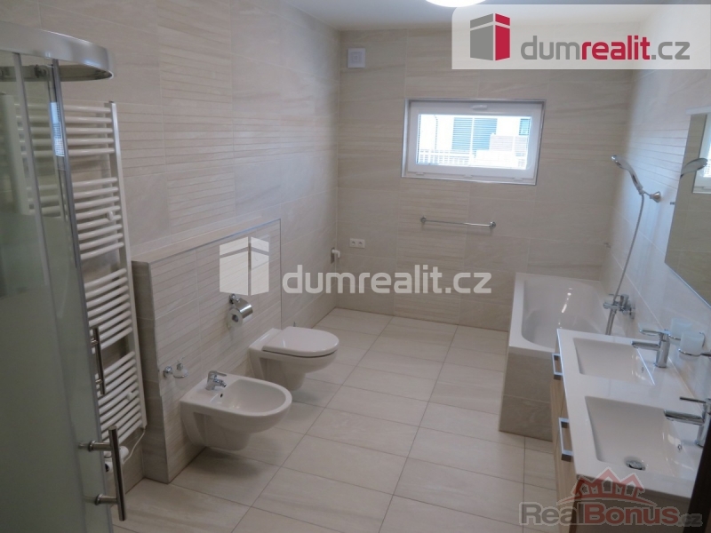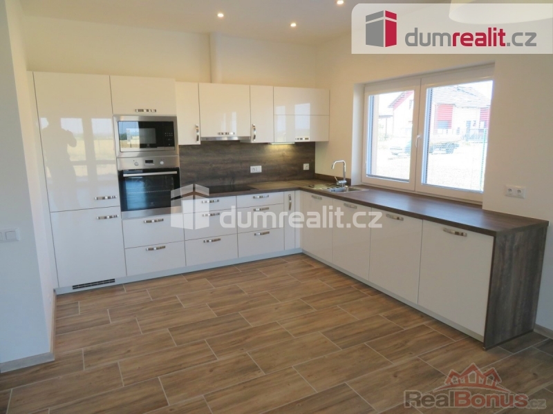 záloha na vodu 1500 Kč, elektroměr a plynoměr se hlásí na nájemce, Dumrealit.cz Vám zprostředkuje exkluzivně pronájem nízkoenergetické, bezbariérové novostavby domu (2018 top stav) s dispozicí 4+kk, 152,40 m + 8 m krytá terasa, v obci Sibřina, nedaleko městyse Říčany, 3 km od Prahy. Dům je volný od listipadu, prohlídky jsou již monžné, aktuálně se maluje a připravuje pro nového nájemce. Plocha pozemku je 1143 m, zastavěná plocha je 200 m, zahrada má 943 m. Dispozici domu 4+kk (152,40 m) s garáží (20 m) tvoří prostorný obývací pokoj (40,9 m) s možností instalace krbových kamen, prakticky spojený s kuchyňským koutem, který je vybavený luxusní zakázkovou kuchyňskou linkou se spotřebiči (myčka 60, indukční deska, digestoř a vestavěná el. trouba a vestavěná mikrovlnka). Kuchyňský kout má praktickou komoru/špajz (1,93 m). Z obývacího pokoje je vstup přes francouzské dveře na zastřešenou terasu (8 m) a na zahradu (943 m). Další místnost domu 4+kk (152,4 m) tvoří: ložnice (15,76 m), dětský pokoj (14,48 m) a pokoj (13,88 m), centrální koupelna (9,84 m) s vanou, umyvadlem, toaletou, bidetem, sprchovým koutem a oknem. Dále jsou v domě: komora / technická místnost (4,43 m), toaleta (2,40 m), velká interiérová chodba (14,12 m), zádveří (6,46 m), samostatný sklad (8,20 m), který má přístup ze zahrady a je zde umístěn plynový kotel, a velká garáž pro 1 auto (20 m) se vstupem do domu. V celém domě je podlahové/teplovodní vytápění pomocí plynového kotle a klimatizace. Konstrukce domu je z materiálu Ytong. Na podlaze ve 2/3 domu je praktická dlažba, ostatní pak plovoucí podlahy. Vjezd do garáže je ovládán elektronicky. Tento dům je volný od listopadu, je v osobním vlastnictví, elektroměr a plynoměr se hlásí na nájemce. Kauce je 2 x nájem, v případě zvířat info v RK. Na zahradě je 4 m3 nádoba na dešťovou vodu zalévání. Internet pomocí místní WIFI, dům má vlastní alarm. Majitel garantuje stabilní dlouhodobý pronájem, aktuální nájemce se stěhuje na vlastní žádost po 3 letech. Dům pronajímáme od roku 2018. Velmi doporučuji všem, kteří hledají bungalov s velkou zahradou a garáží. Ev. číslo: 652493. Energetický štítek: B (167 kWh/m2/rok).