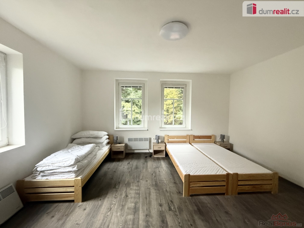 Voda 550 Kč/osoba, chodbová elektřina 50 Kč. Elektřina se přepisuje na nájemníka, K pronájmu nabízíme nově zrekonstruovaný byt o dispozici 2+1 a velikosti 65 m, který se nachází v 1. patře zrekonstruovaného bytového domu se zahradou a vyhrazeným parkovacím stáním. Byt je plně vybaven k dispozici jsou skříně, televize, jídelní stůl se židlemi, lednice, nádobí, postele i sedací souprava. Kuchyňská linka je velmi prostorná a součástí je sporák.
