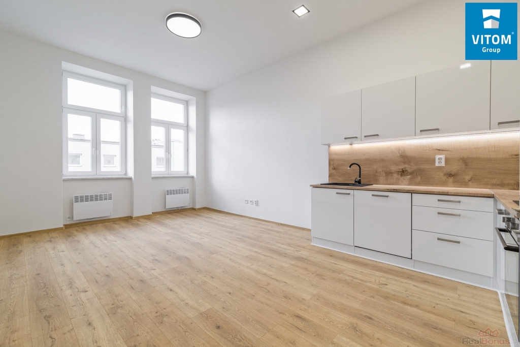 Moderní byt po kompletní rekonstrukci v cihlovém domě s parkováním ve dvoře.