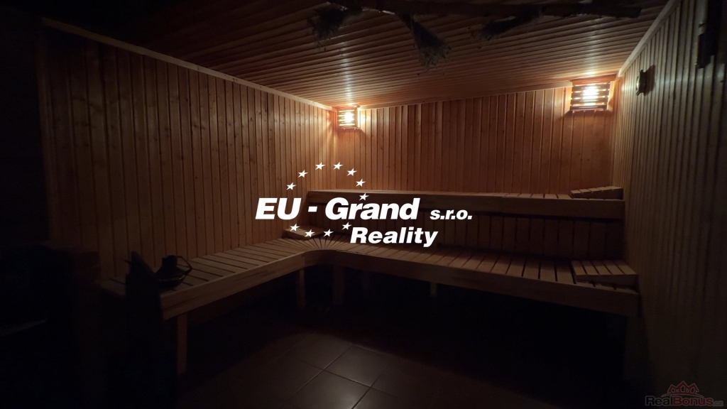 venkovní plavecký bazén 17 × 5,5 m (306 m2, parc. č. 6988/4) ? nová dlažba, rozsáhlá zahrada o výměře 2 432 m2 (parc. č. 6988/1) s posezením, venkovním grilem a ohništěm, dětské hřiště, trampolína, stolní tenis, šipky, minigolf, půjčovna sportovních potřeb, sauna, masáže, fitness sál.