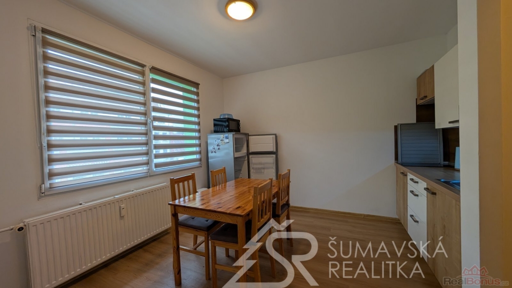 Nabízíme k dlouhodobému pronájmu zařízený byt 1+1 po kompletní rekonstrukci, který se nachází v 1. nadzemním podlaží udržovaného bytového domu poblíž centra Železné Rudy. Obě okna bytu jsou orientovaná na jih. Dům má vyměněna okna za nová plastová a je zateplený,