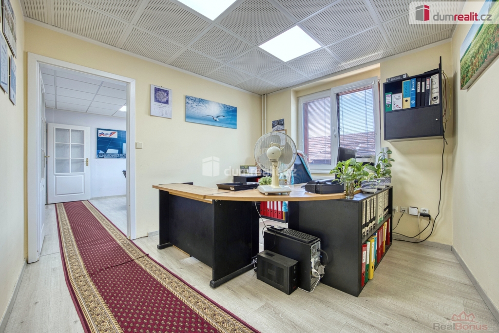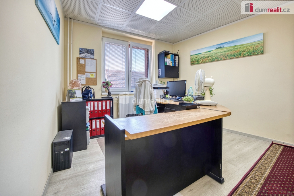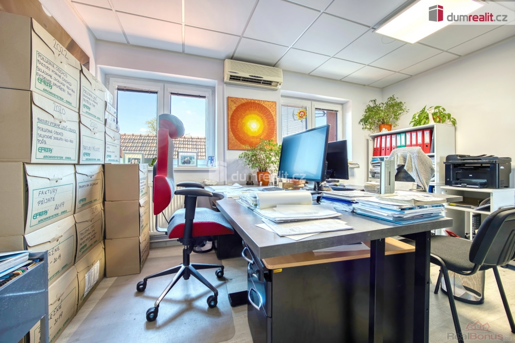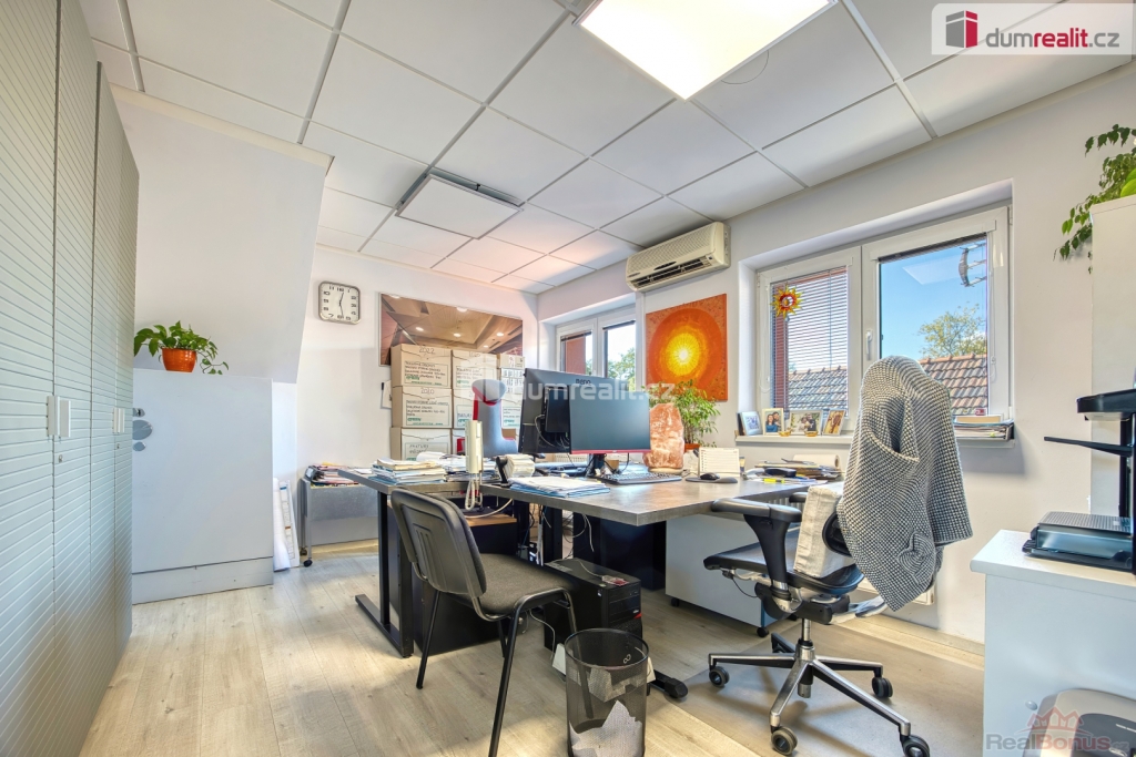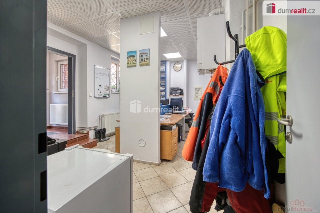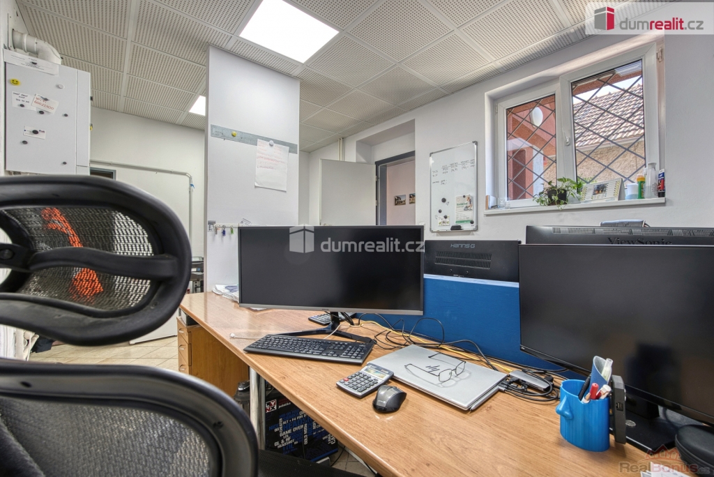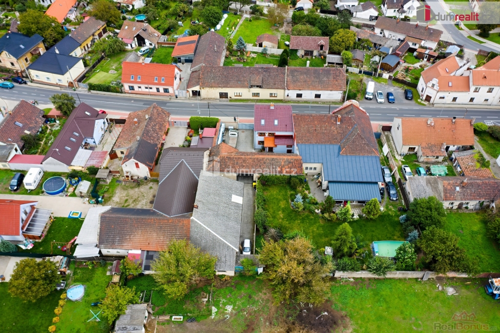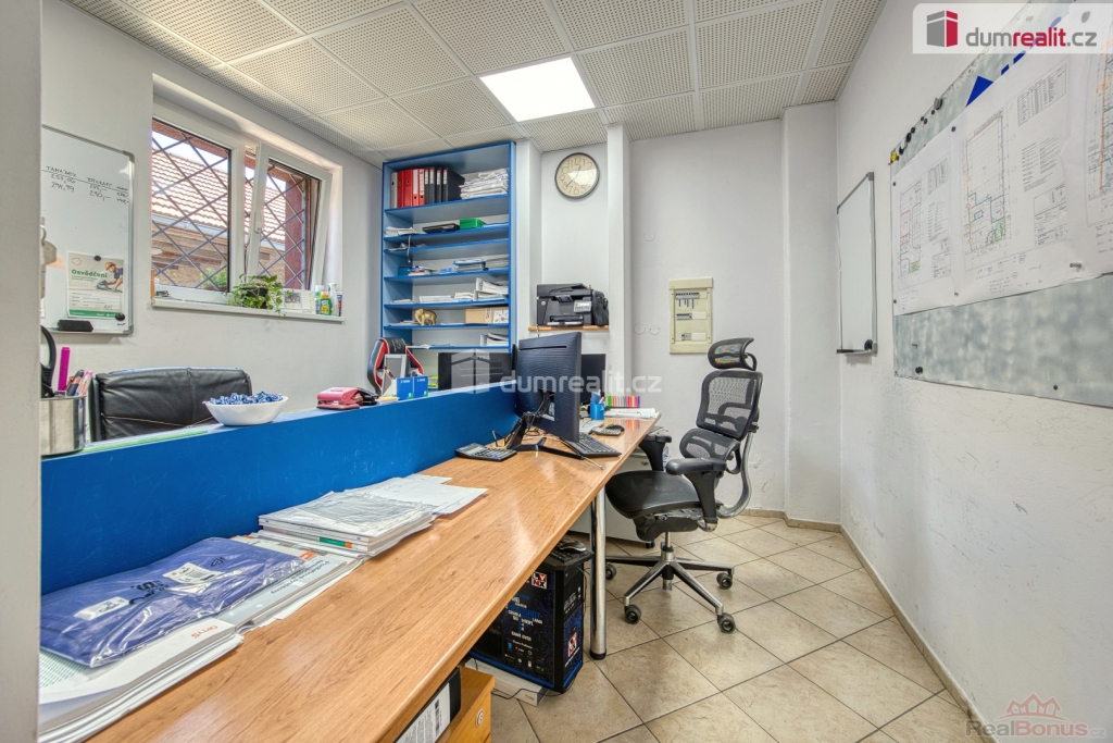, Předmětem nabídky je areál firmy AROS-STAV Neratovice s.r.o., který se nachází v okrajové, severní části obce. Je přístupný z hlavní komunikace procházející obcí, navazující na silnici I.třídy č.9, směr Praha-Mělník. Areál je napojený na veřejný vodovod, rozvod elektřiny a plynu. V areálu se nachází tři stavební objekty. Administrativní budova s kancelářemi a prodejnou a sociálním zázemím ve dvou patrech budovy (I.NP 75,08m. II.NP 68,20m), a samostatnou bytovou jednotkou (68,20m) v podkroví. Další dvě budovy (126,58m a 132,84m) slouží jako garáže a sklady firmy. Celý areál je oplocený.