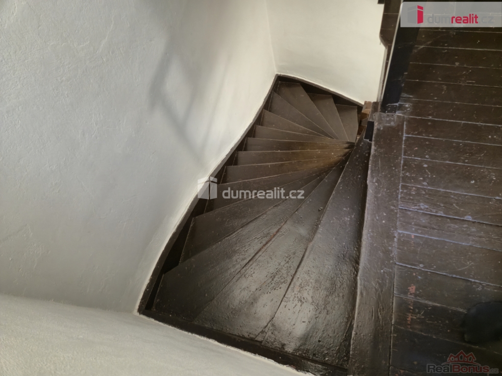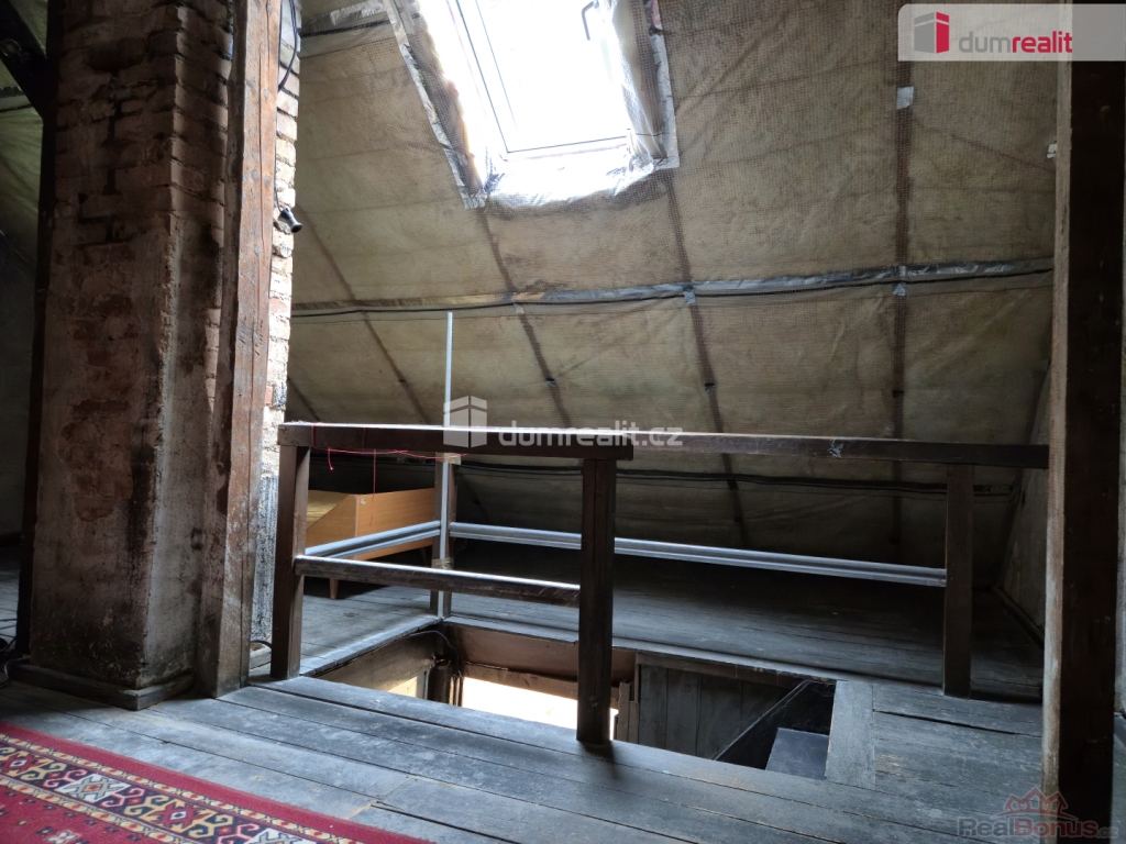 Ve třetím patře, přístupném po dřevěném schodišti, je pak malý průchozí pokoj a velký, s krásným výhledem na obec. Dále je tu k dispozici ještě zateplené podkroví.