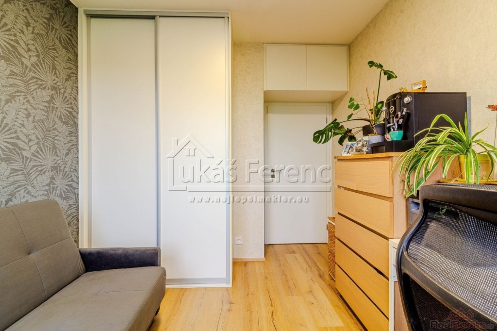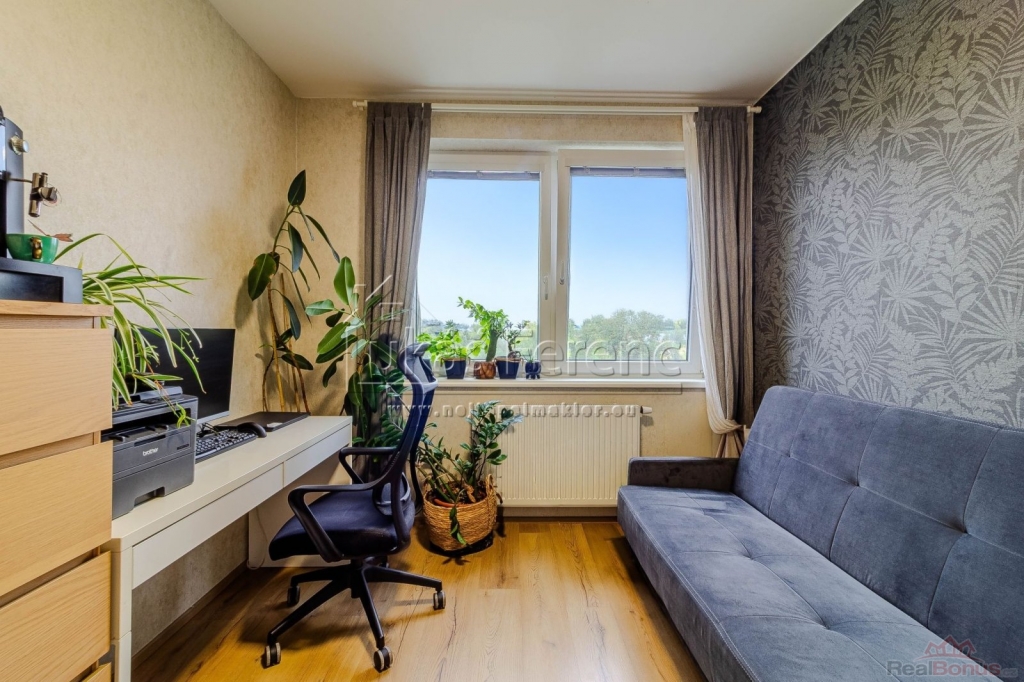 Dispoziční řešení je ideální pro rodinu obývací pokoj s kuchyňským koutem a tři neprůchozí pokoje zajišťují dostatek soukromí i prostoru. Celková atmosféra bytu je vzdušná a světlá, což oceníte v každodenním životě.