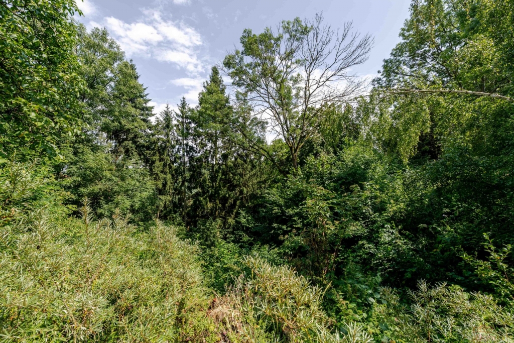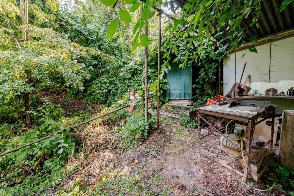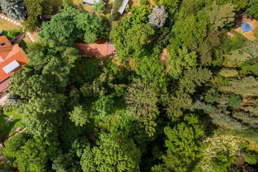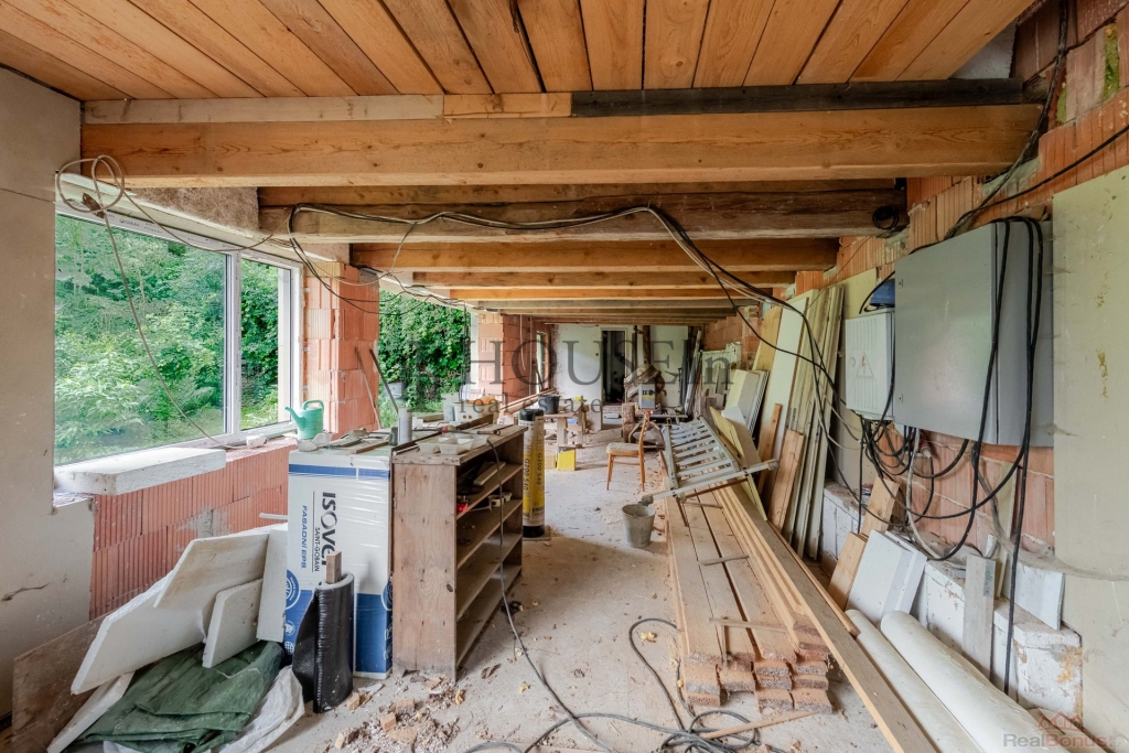 V zadní části pozemku se nachází malý rozestavěný dům s přiděleným číslem popisným, s užitnou plochou cca 50 m2, doplněný přístavbou. Tato část je svažitější, s lesním charakterem, porostlá vzrostlými stromy a navazuje přímo na les, ktery sousedí s přírodní rezervací Voděradské bučiny.