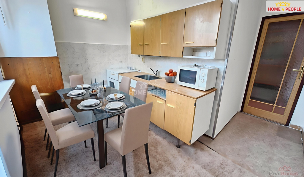 Dispozice bytu zahrnuje tři samostatné pokoje, které lze snadno přizpůsobit vašim potřebám, a prostornou kuchyni, která je ideálním místem pro rodinné večeře a setkání s přáteli. Součástí bytu je také balkón, kde si můžete vychutnat ranní kávu nebo relaxovat po náročném dni. K bytu náleží sklep, který poskytuje dostatek úložného prostoru pro vaše sezónní věci a další potřebnosti.