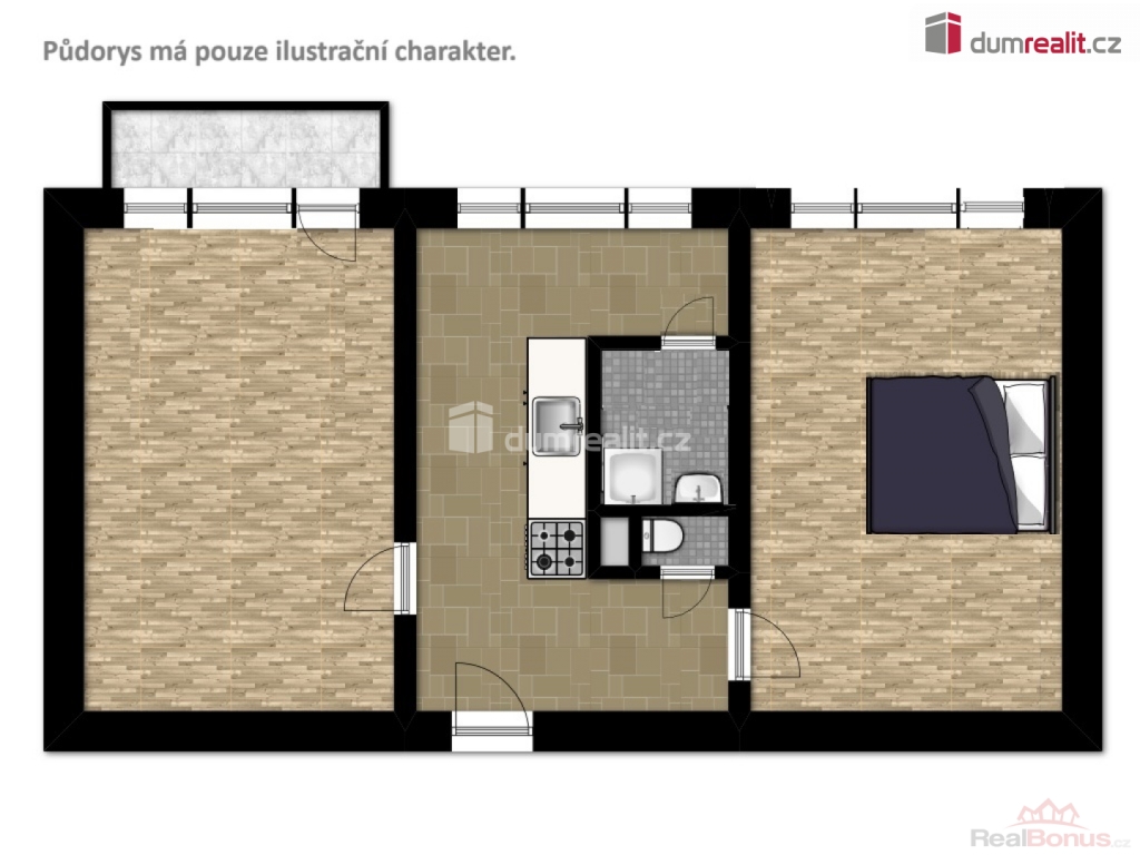Byt prošel v nedávné době kompletní revitalizací a nabízí se k pronájmu bez vybavení/nábytku. Sestává z otevřené chodby, kuchyně s moderní linkou s prostorem pro jídelní stůl, koupelny se sprchovým koutem, umyvadlem s místem pro pračku a dále ze dvou neprůchozích pokojů o cca 20 m, kde z obýváku je přístup na balkon.