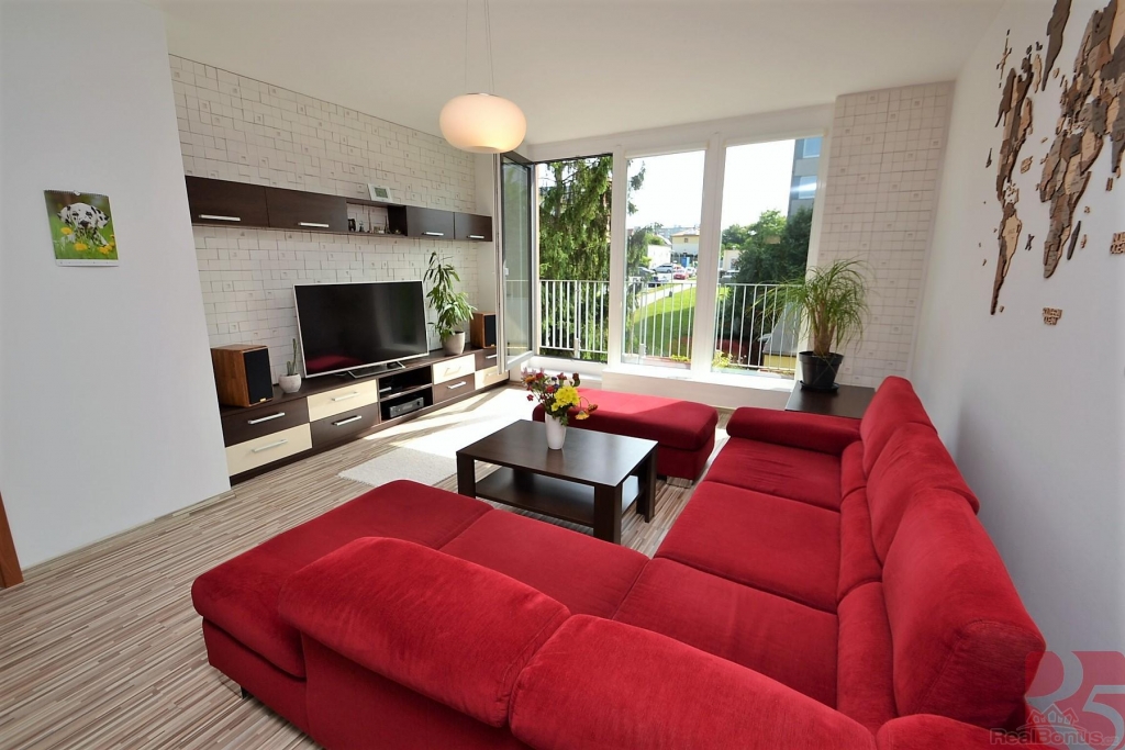 Ideální rodinný byt s velkým obývacím pokojem a čtyřmi pokoji. Ložnice rodičů má velké rohové okno a vlastní koupelnu s toaletou. Pokoje mají samostatné vstupy z prostorné chodby do tvaru L. Zde i hlavní koupelna s vanou a dvěma umyvadly, samostatná toaleta, komora. U vstupu velká šatní skříň a prosklené dvoukřídlé dveře do obývacího pokoje. V dětských pokojích a ložnice vestavěná šatní skříň. Pokoje zůstávají zařízené, dle dohody.