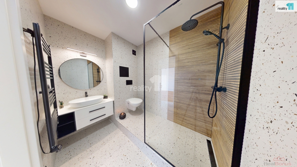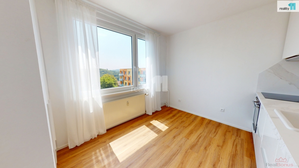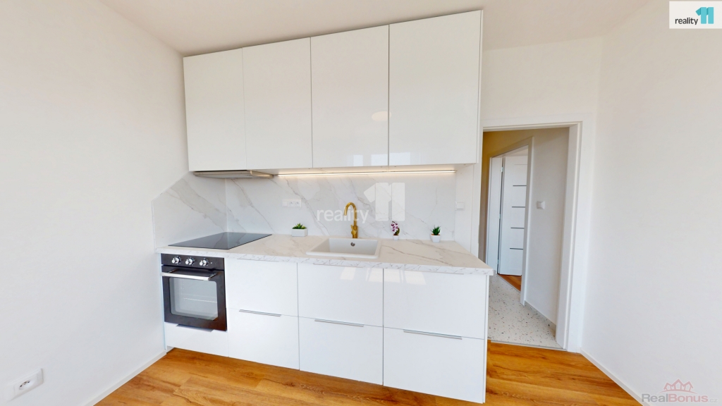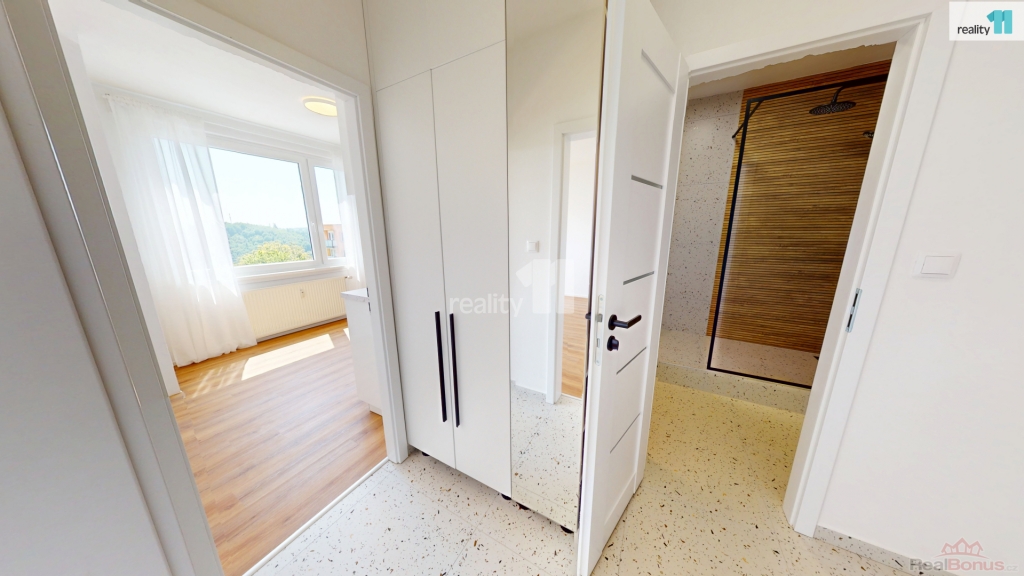 Hned při vstupu vás přivítá prostorná chodba s vestavnou šatní skříní na míru, která elegantně řeší úložný prostor. Součástí bytu je také nádherná designová koupelna se sprchovým koutem, kde nechybí ani přípojky na pračku a sušičku. Další místností je kuchyň, která zaujme na první pohled čeká vás zde zcela nová kuchyňská linka. Elegantní provedení a dostatek úložného i pracovního prostoru vytvářejí ideální zázemí pro každodenní vaření i chvíle s kávou u okna. Je to prostor, který vás bude bavit ať už vaříte každý den nebo jen občas. Poslední místností je prostorný a světlý pokoj, který díky své velikosti umožňuje pohodlně rozdělit zónu pro spaní i odpočinek. Byt je po celý den příjemně prosvětlený.