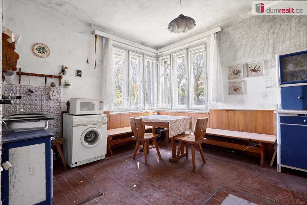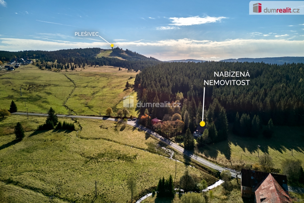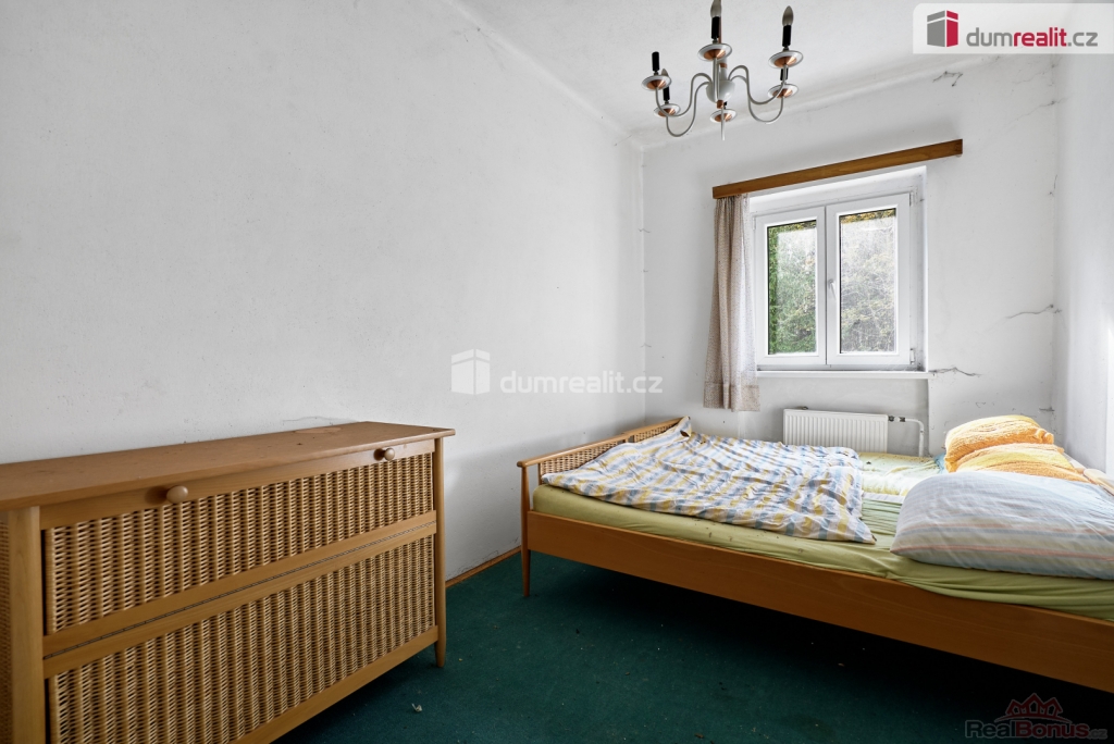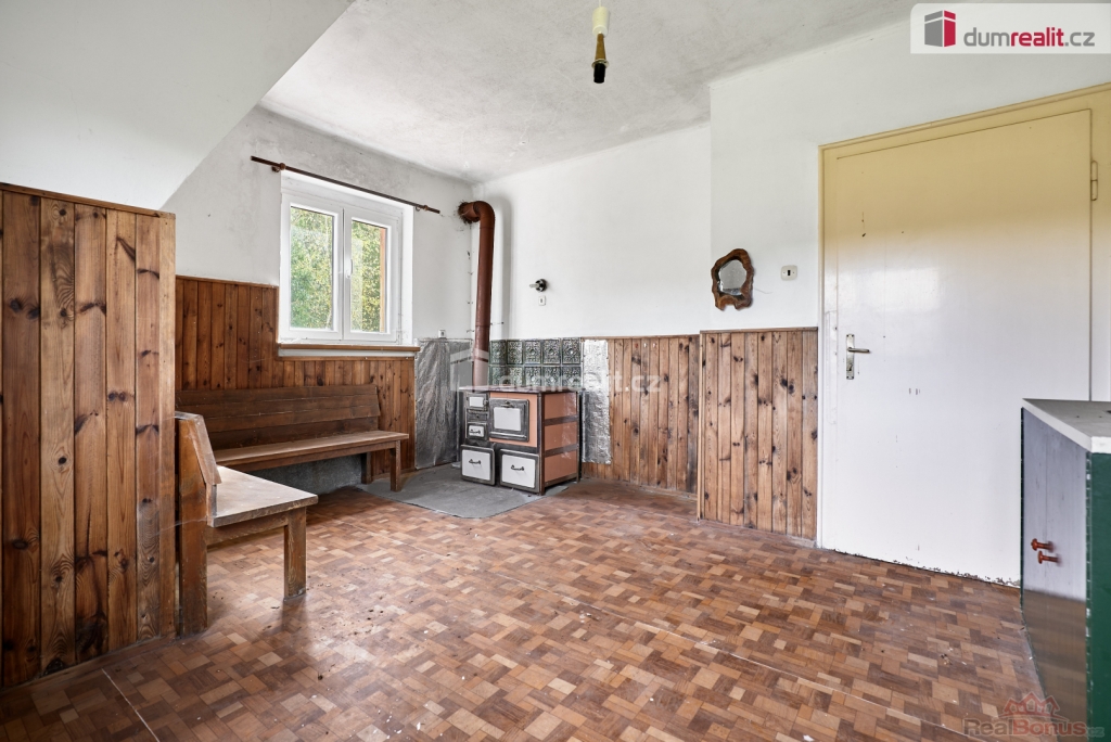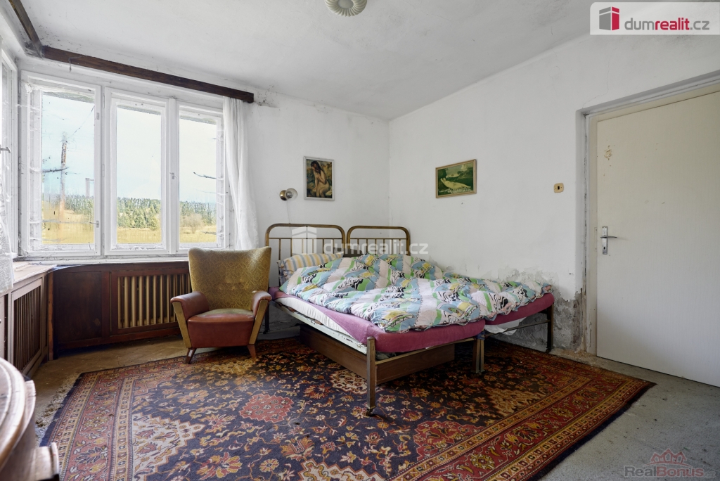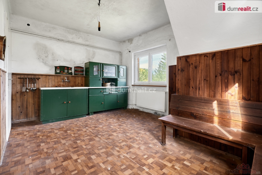 Při rychlém jednání dohoda možná. , Dumrealit.cz Vám zprostředkuje prodej rodinného domu 5+1 ve městě Abertamy v Krušných horách. Dům se nachází na pozemku o celkové výměře 2.486 m, v klidné části obce s překrásným výhledem na přírodu. Tento zděný dům je dvoupodlažní, celopodsklepený s podlahovou plochou 150 m. Dům leží nedaleko samotného centra města Abertamy, přesto je v pěkném a klidném prostředí. V přízemí se nachází: zádveří, chodba, hala vč. schodiště, prostorný obývací pokoj s krbovými kamny, ložnice, kuchyně, koupelna s WC a vstup do sklepa. V podkroví se nachází: chodba, obývací pokoj s krbovými kamny a vstupem na balkon, ložnice, kuchyně, koupelna s WC a vstup na půdu. Dům disponuje půdním prostorem vhodným pro vybudování dalších obytných místností. Možnost parkování vozů na vlastním pozemku. Nemovitost je v původním stavu, vhodná k celkové rekonstrukci. Dle územního plánu města Abertamy se zde nabízí možnost vybudování: 1) rodinného domu 2) bytového domu 3) řadového domu 4) dvojdomů nebo další přípustná využití dle ÚP. Město Abertamy stojí v Krušných horách v nadmořské výšce okolo 900 metrů. Abertamy vám umožní bohaté celoroční sportovní vyžití. Upravené cyklostezky, turistické trasy, v zimě pak udržované běžecké tratě nebo nedaleké lyžařské areály (Plešivec 2,5 km, Boží Dar 9 km, Klínovec 13 km). Při rychlém jednání dohoda o ceně možná. Nemovitost lze financovat hypotečním úvěrem, který Vám rádi pomůžeme zajistit v našem hypotečním centru. Vzhledem k tomu, že před zadáním do inzerce nebyl vyhotoven energetický průkaz, je tato nemovitost v souladu s platnou legislativou zařazena do energetické třídy G. Ev. číslo: 648839. Energetický štítek: G