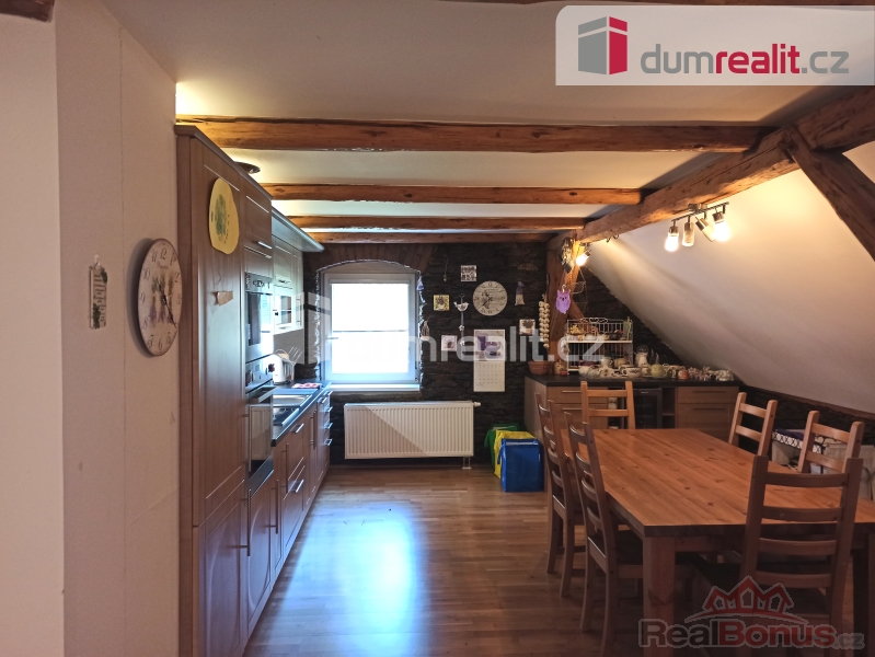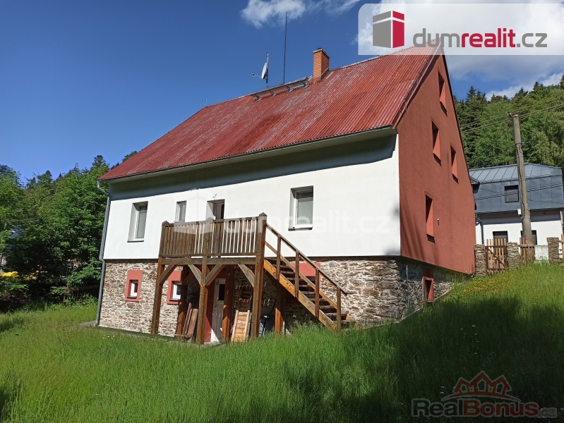 CENA K JEDNÁNÍ je kompletní včetně právního servisu a úschovy kupní ceny., Dumrealit.cz Vám zprostředkuje prodej patrového rodinného domu o velkosti 6+kk (zast. plocha 122 m; obytná plocha 131 m; užitková plocha 165 m) v Jáchymově - místní část Suchá u Karlových Varů. Součástí stavebního pozemku, na němž je dům postaven, jsou přilehlé pozemky o celkové rozloze 1 115 m (z nichž 25 m zabírá stavba garáže a ostatní plocha slouží jako zahrada).