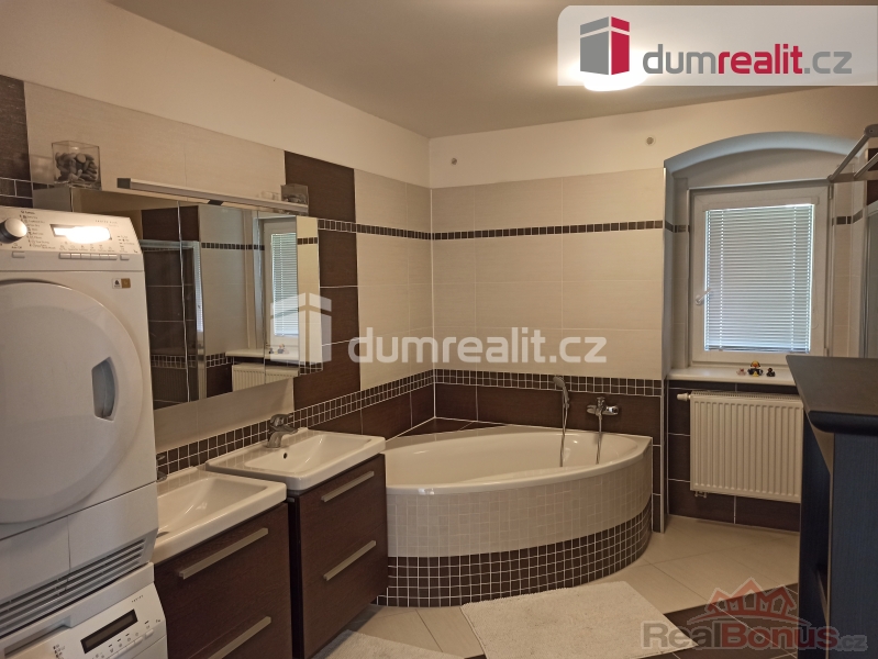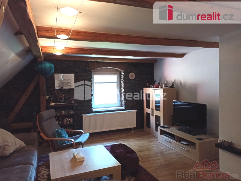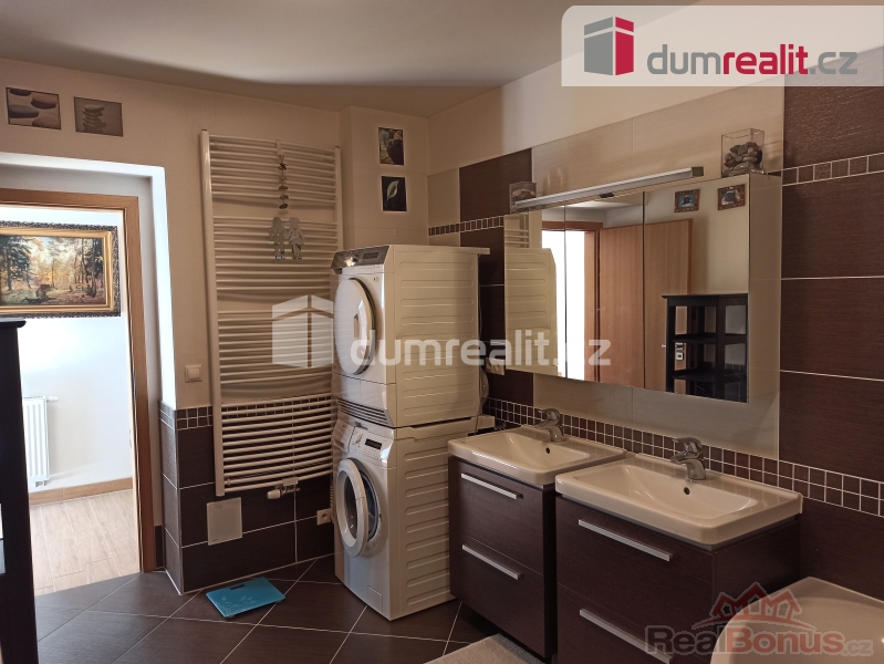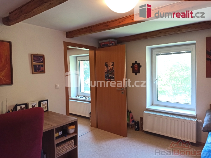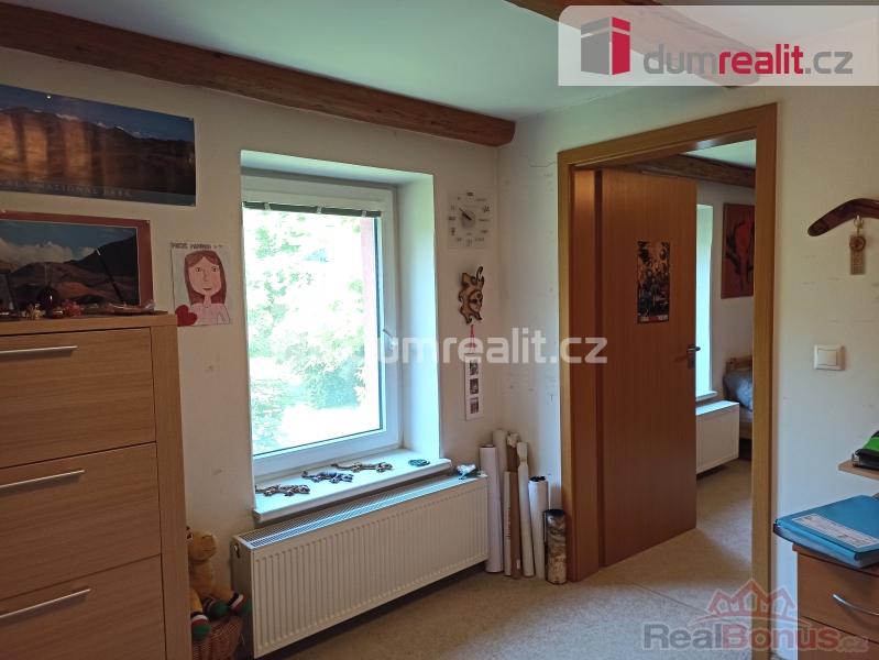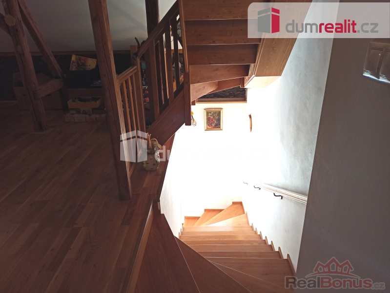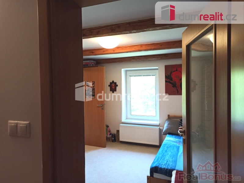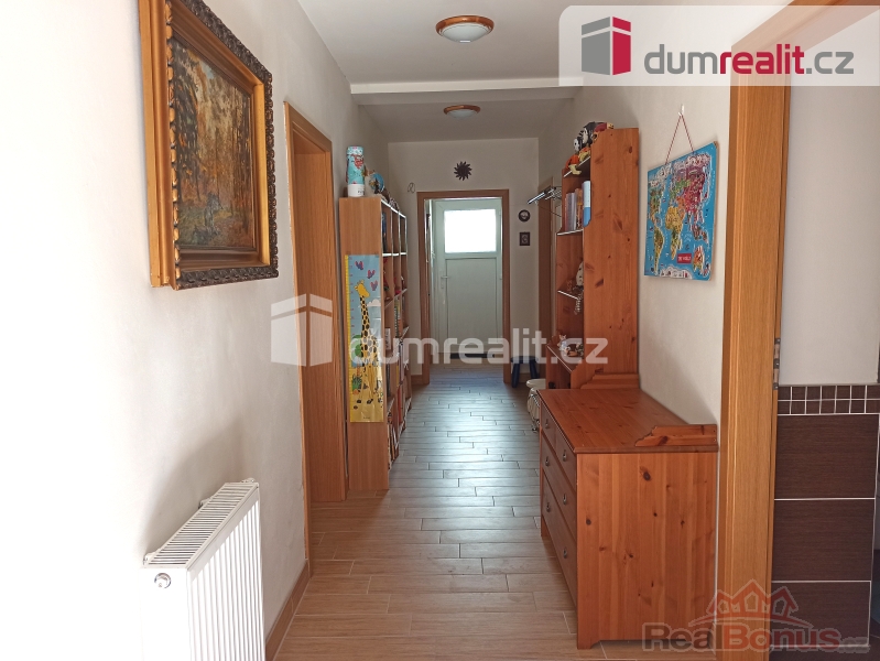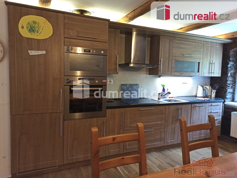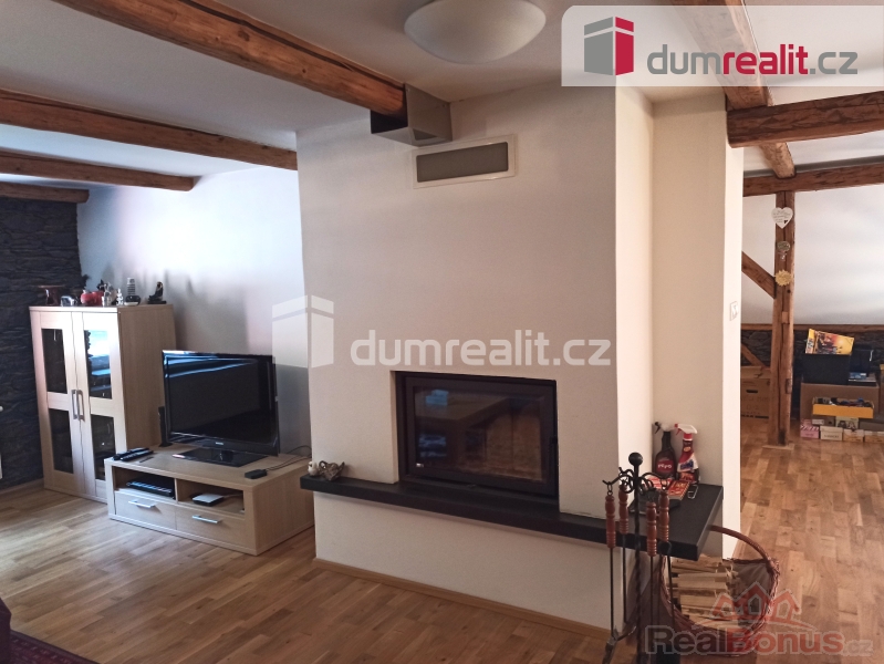 Dům se nachází v klidné části obce a je postaven na rovinatém pozemku, který je slunný od východu do západu slunce. Kompletní rekonstrukce domu proběhla v roce 2012. V prvním podzemním podlaží je kotelna, sklepní prostory, v 1. NP je sociální zařízení (koupelna a WC) a tři pokoje, ve 2. NP je kuchyně s jídelnou, obývací pokoj s krbem, dva pokoje, ve 3. NP je prostorná půda. Součástí vybavení domu je sociální zařízení a sanita v koupelně (vana, sprchový kout, umyvadlo), samostatné WC s umyvadlem, dále moderní kuchyňská linka se spotřebiči (el. sporák, el. trouba, digestoř, myčka apod.) + rozvod příjmu TV vysílání ve všech místnostech, připojení k internetu apod. Vytápění domu je centrální ústřední teplovodní s radiátory, které je zajištěno kotlem na dřevěné pelety, druhým zdrojem je elektrický kotel, ohřev teplé užitkové vody zajišťuje el. bojler, k vytápění je možné také využít krb v obývacím pokoji; studená voda je z vlastní studny (zásobník cca 6m3 z pramene ve stráni), kanalizace je napojena do vlastního septiku. Na přilehlém pozemku je postaven venkovní krb a samostatná stavba se saunou.
