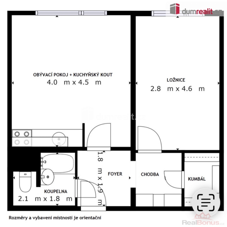 Celková plocha bytu činí 40 m. Vytápění je zajištěno ústředním dálkovým systémem.