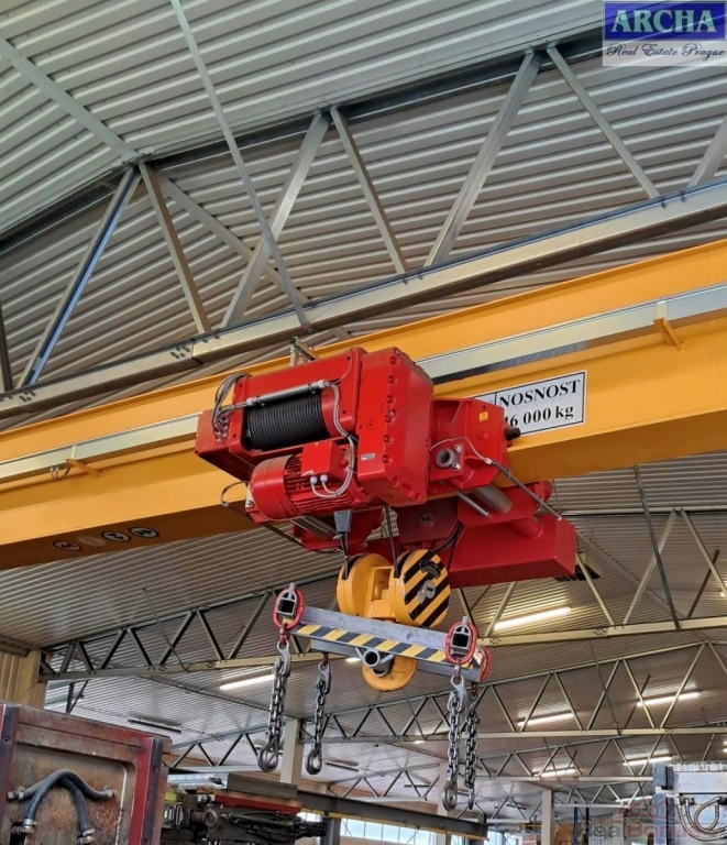 Zátěžová podlaha, mostový jeřáb 16 tun, plynové topení Monzun.