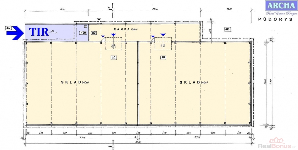 Plocha skladu: 2098 m2 vč. kryté rampy