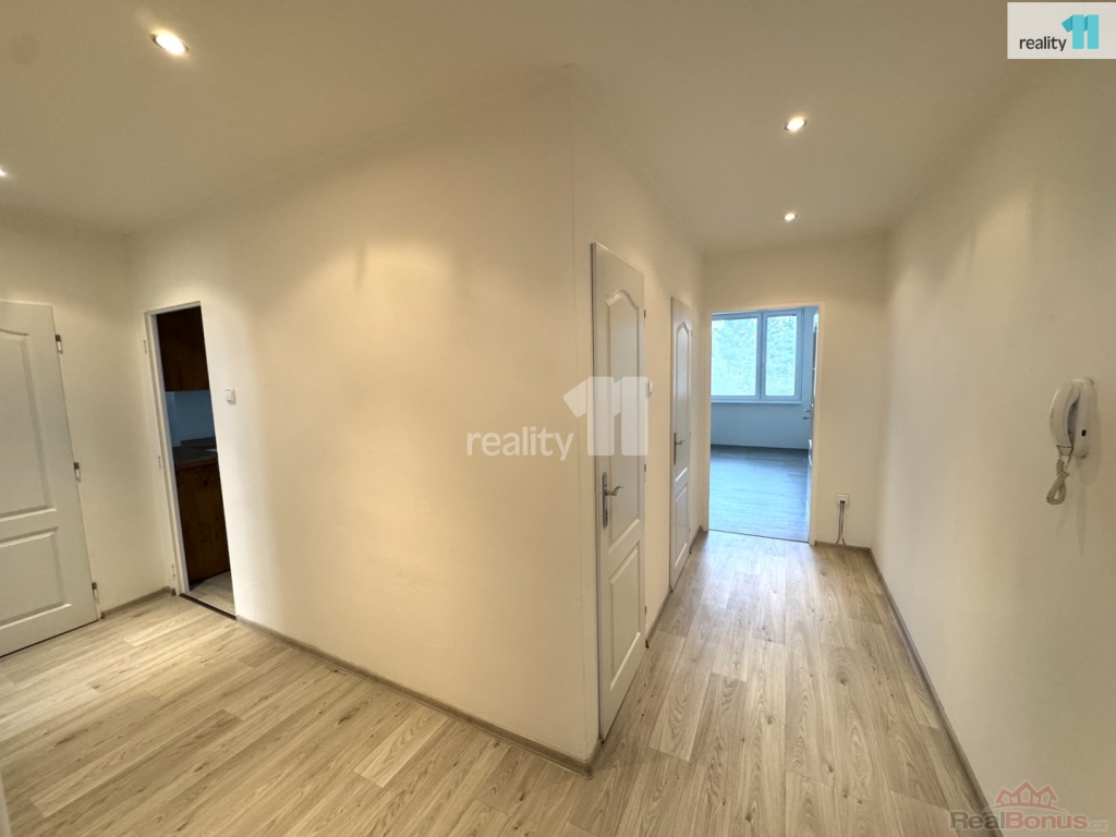 V bytě, o velikosti 68.5 m, je právě dokončená rekonstrukce. Nová koupelna se sprchovým koutem, toaleta po rekonstrukci, nové podlahy, nová výmalba, kuchyňská linka cca 2 roky stará - moderní a praktická . Má ideální dispozici, kdy ze vstupní chodby do tvaru L, vedou samostatné dveře do obou ložnic (cca 8.5 m a 11.5 m), přičemž u větší ložnice je slunná, zasklená lodžie. Dále velký obývací pokoj s kuchyňským koutem (cca 32 m). Kuchyňská linka s myčkou, plynovou varnou deskou, troubou, digestoří. Lednice ani pračka v bytě není. K uložením věcí Vám skvěle poslouží praktická šatna, samostatná komora naproti bytu a také sklep v suterénu domu.