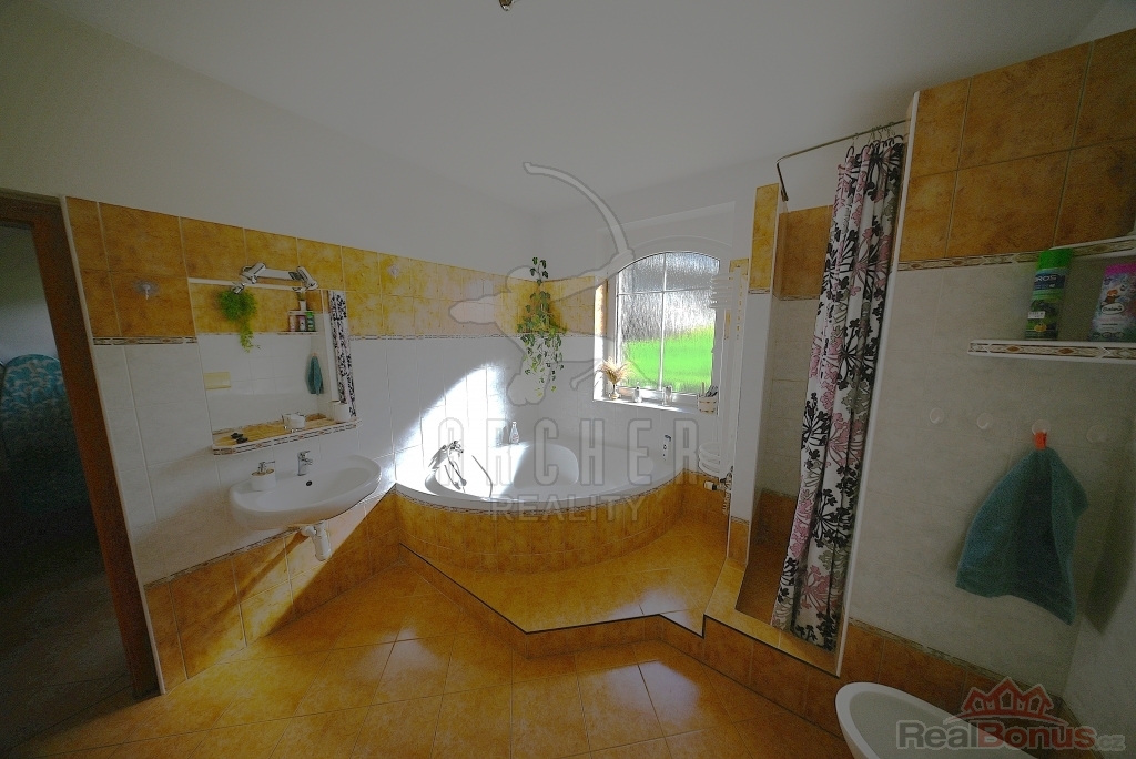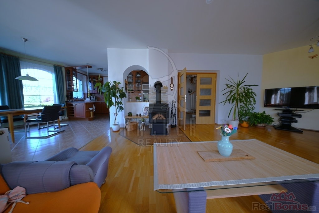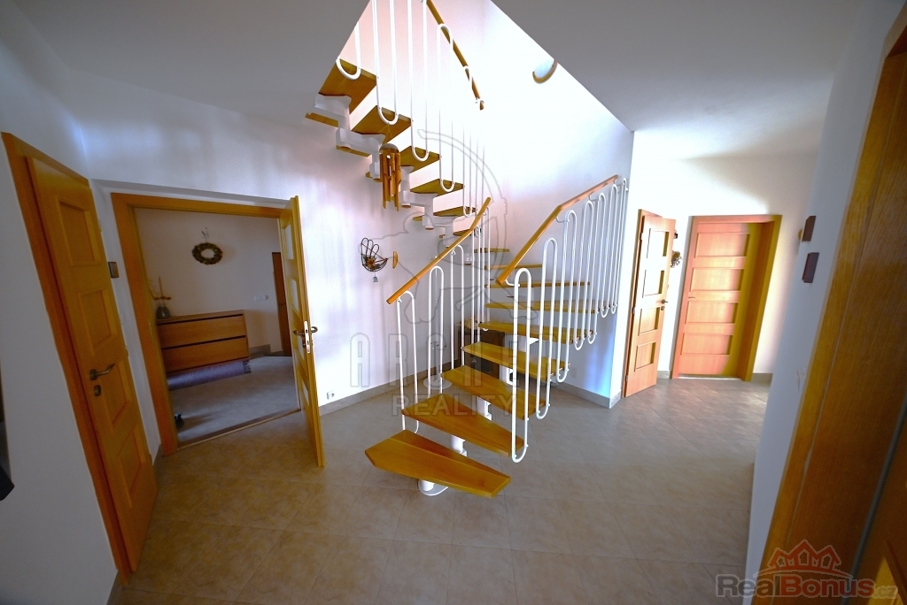 Dům je dispozičně 6+1 - kuchyň, obývací pokoj a pět pokojů, z toho 3 ložnice, každá s vlastní šatnou. 3 koupelny, dvojitá garáž, terasa před domem, 2 balkony, bazén, zahradní domek. Všechny sítě na pozemku, topení a teplou vodu zajišťuje plynový kotel, kombinace podlahového topení a radiátorů. Dům je velmi pěkný, prostorné a světlé místnosti, moderně řešené dispozice domu. Ideální pro klidné bydlení pro rodinu na okraji Prahy.