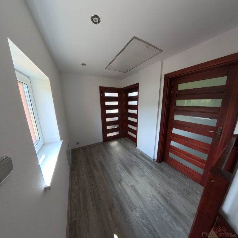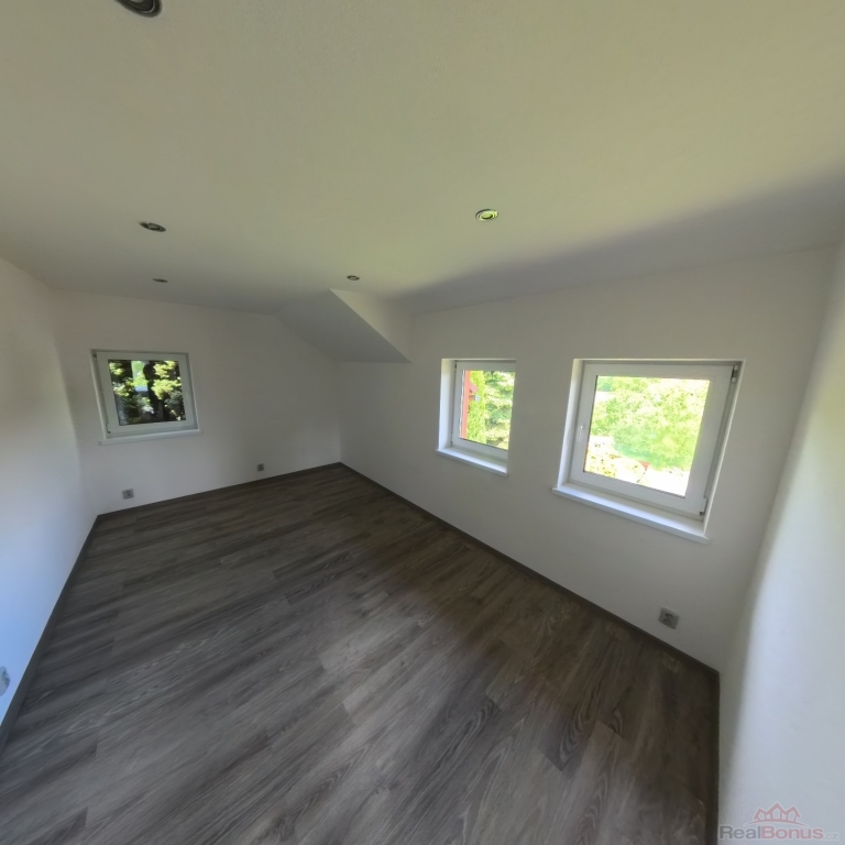 Prodej RD se samostatnou garáží v Bohaticích u Zákup. Jedná se o kompletně zrekonstruovaný, částečně podsklepený přízemní dům s obytným podkrovím. V přízemí se nachází zádveří s chodbou, obývací pokoj s oddělenou kuchyní (kuchyňská linka se spotřebiči - myčka, varná deska, digestoř, mikrovlnná a pečící trouba) a koupelna. V podkroví jsou dvě ložnice a toaleta. Dům je napojen na obecní vodovod a elektřinu, kanalizace je svedena do jímky. Vytápění je podlahové, ohřev vody pro topení i ohřev TUV zajišťuje elektrokotel. V obývacím pokoji jsou krbová kamna s výměníkem, která jsou také napojena na systém podlahového vytápění. Technická místnost s kotlem je umístěna v suterénu domu. Zateplená fasáda, plastová okna, jako střešní krytina byly použity betonové tašky. Součástí prodeje je velká, samostatně stojící garáž s dílnou. Díky vysokým vratům se garáž hodí i k zaparkování obytného automobilu. V garáži je i příprava na menší koupelnu s WC a sprchovým koutem. Celková rozloha prodávaných pozemků včetně zastavěné plochy je 1173 m2. Velmi klidné místo stranou hlavní silnice, přístupné po veřejné asfaltové komunikaci. Výborná dostupnost do Mimoně a do České Lípy. K dispozici ihned, dům je připraven k okamžitému nastěhování. ET-G