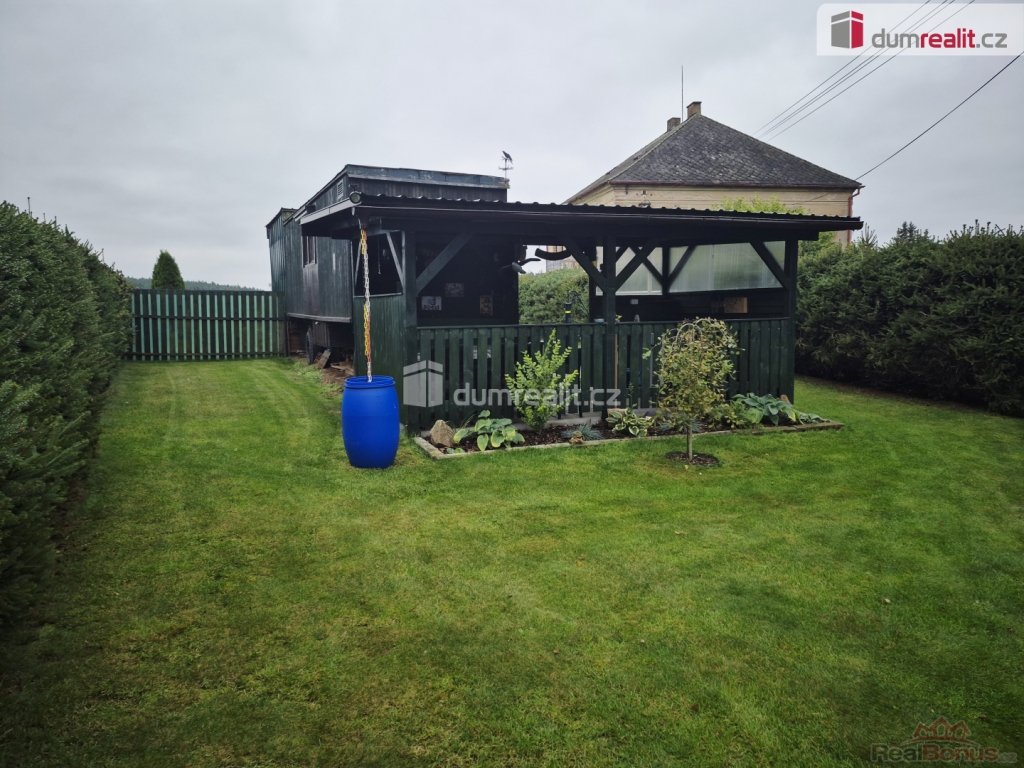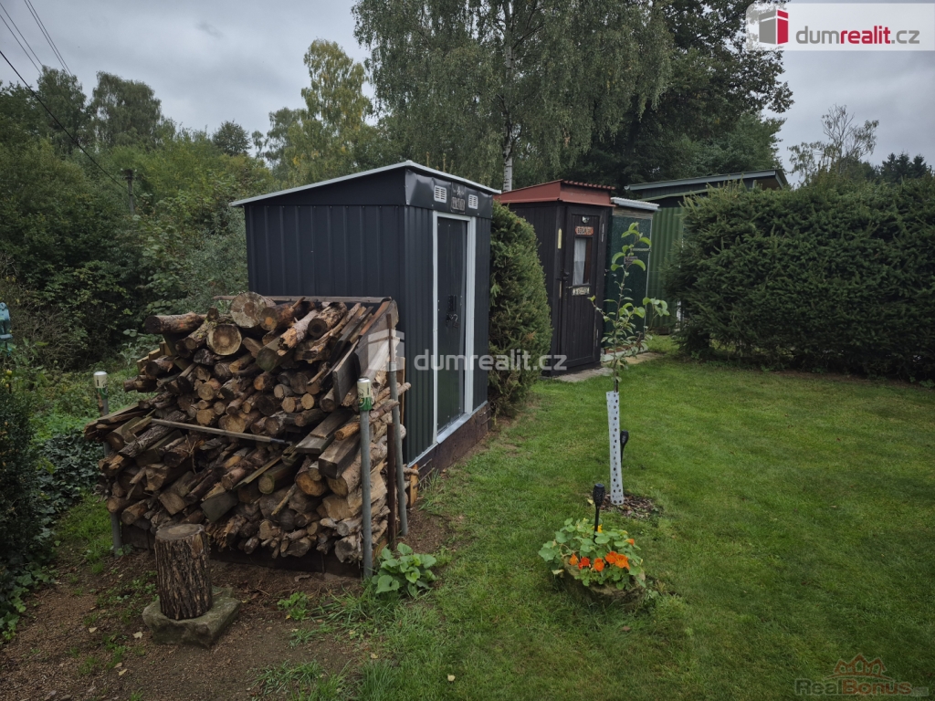 Pozemek je vedený jako zahrada o rozloze 440 m ohraničený jehličnany, a to jedlí a smrkem. Zahrádka má pěkný udržovaný travnatý porost a několik malých okrasných míst. Je zde kromě mobilní maringotky i zastřešená pergola o velikosti 15 m, kde je i letní kuchyně se zavedenou elektřinou, suché WC a bouda na soukromé umývání.