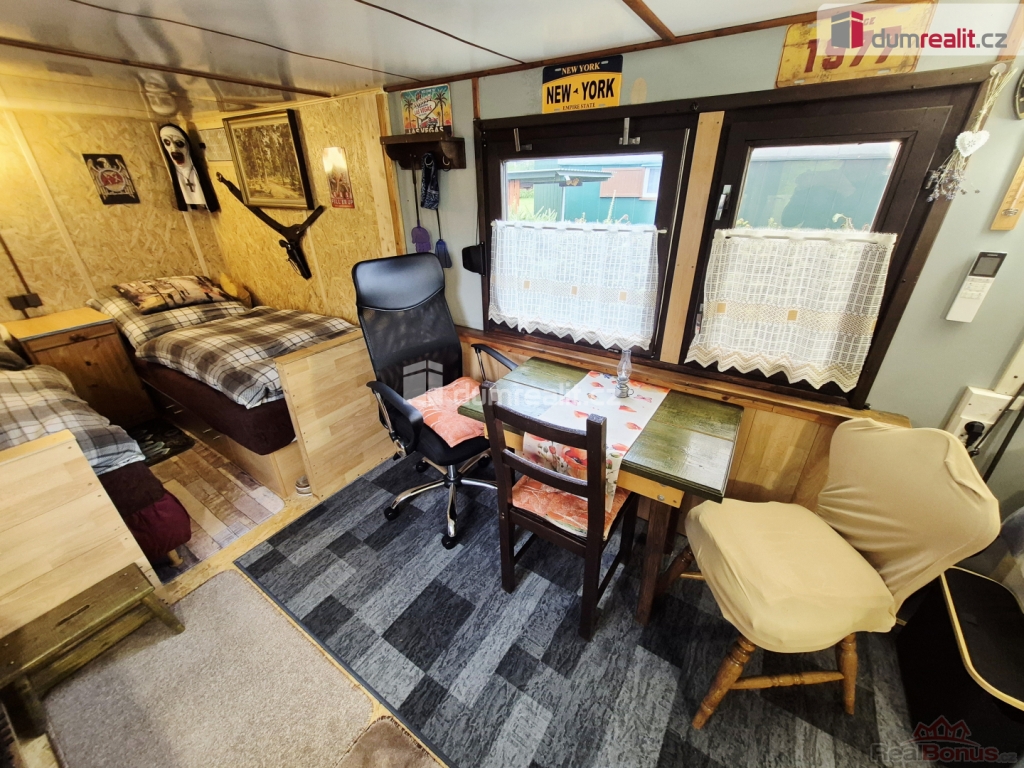Nabízíme Vám prodej ZAHRADY v obci Zdeslav nedaleko Rakovníka, na které si šikovný majitel kutil upravil mobilní maringotku.