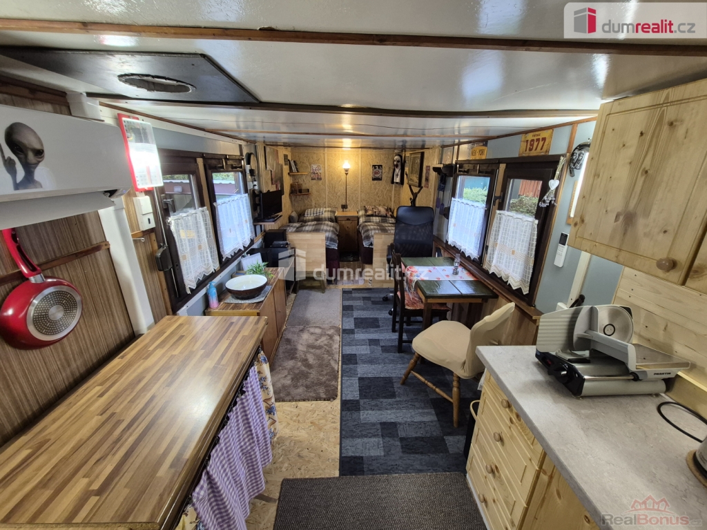 Je zde přiveden elektrický proud, takže lze využívat i v zimě, protože nainstalovaná klimatizace Vám maringotku během chvilky krásně vyhřeje. Zateplená maringotka je dlouhá 7 m, široká 2,4 m + přístavek sloužící jako předsíň cca 6 m. Je plně vybavena, takže si zde uvaříte, upečete, díky WIFI kouknete na TV a na noc zatáhnete venkovní rolety.