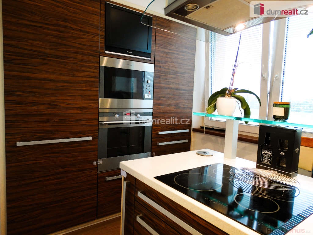 Kuchyně je plně vybavena spotřebiči: k dispozici je lednice, varná deska, digestoř, mikrovlnná trouba, myčka nádobí, pračka, sušička, barový pult a také televize. V ložnici najdete vestavěné skříně, komodu, manželskou postel s nočními stolky. Obývací pokoj nabízí jídelní stůl se židlemi, pohodlnou sedací soupravu, konferenční stolek a skříňku pod televizi; v šatně pak další vestavěné skříně.