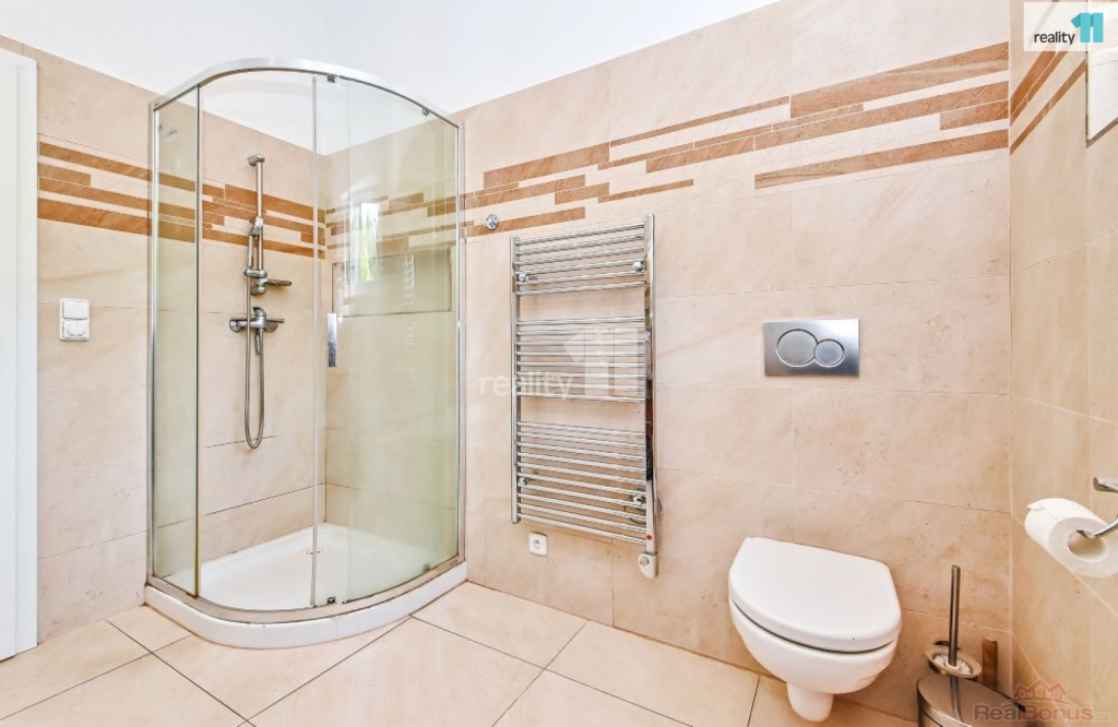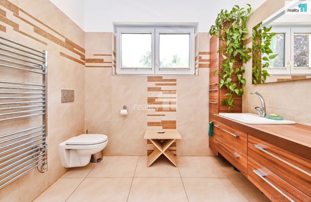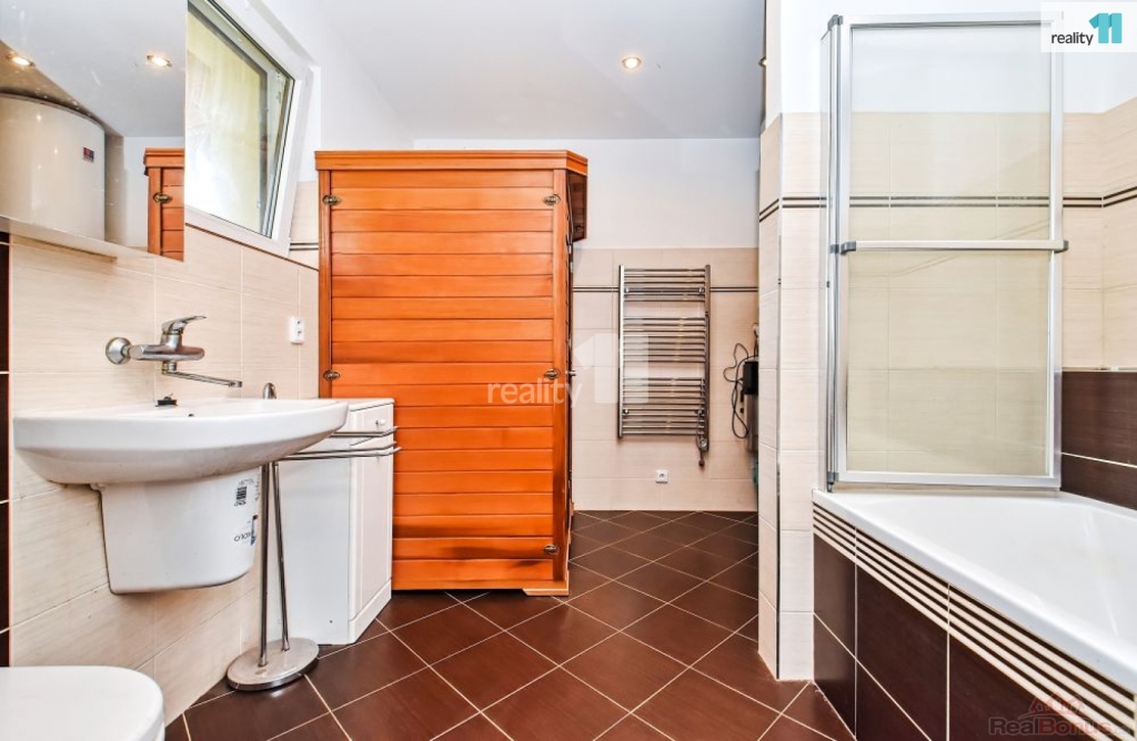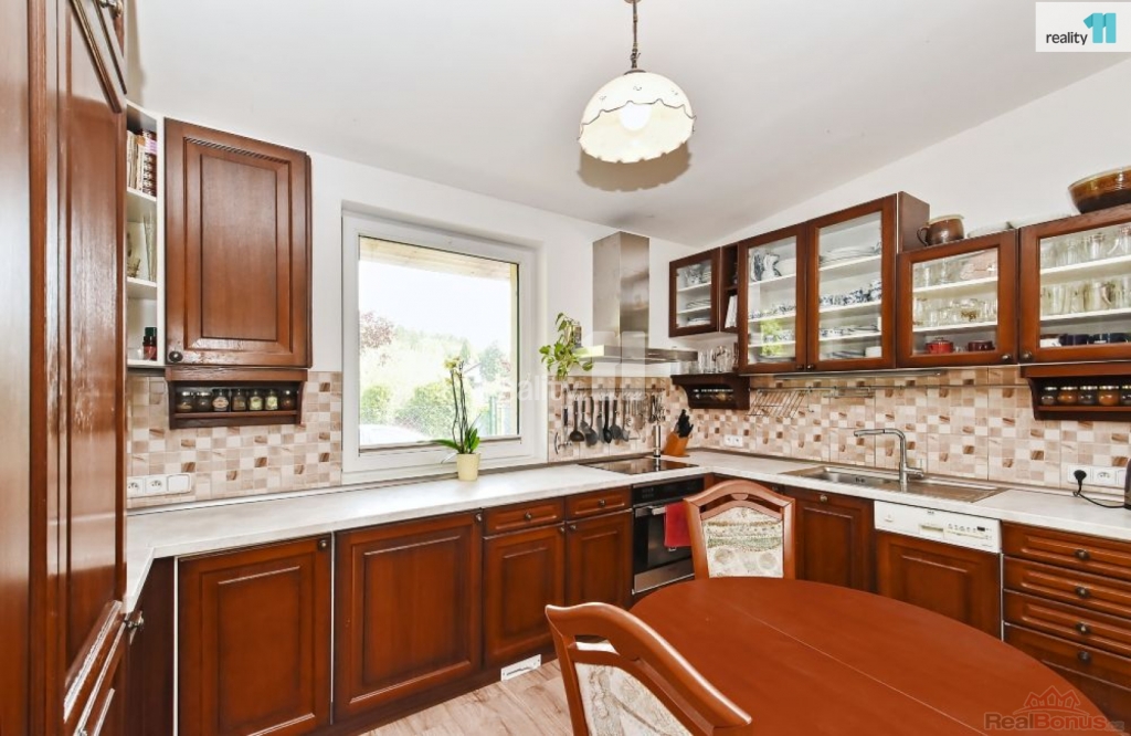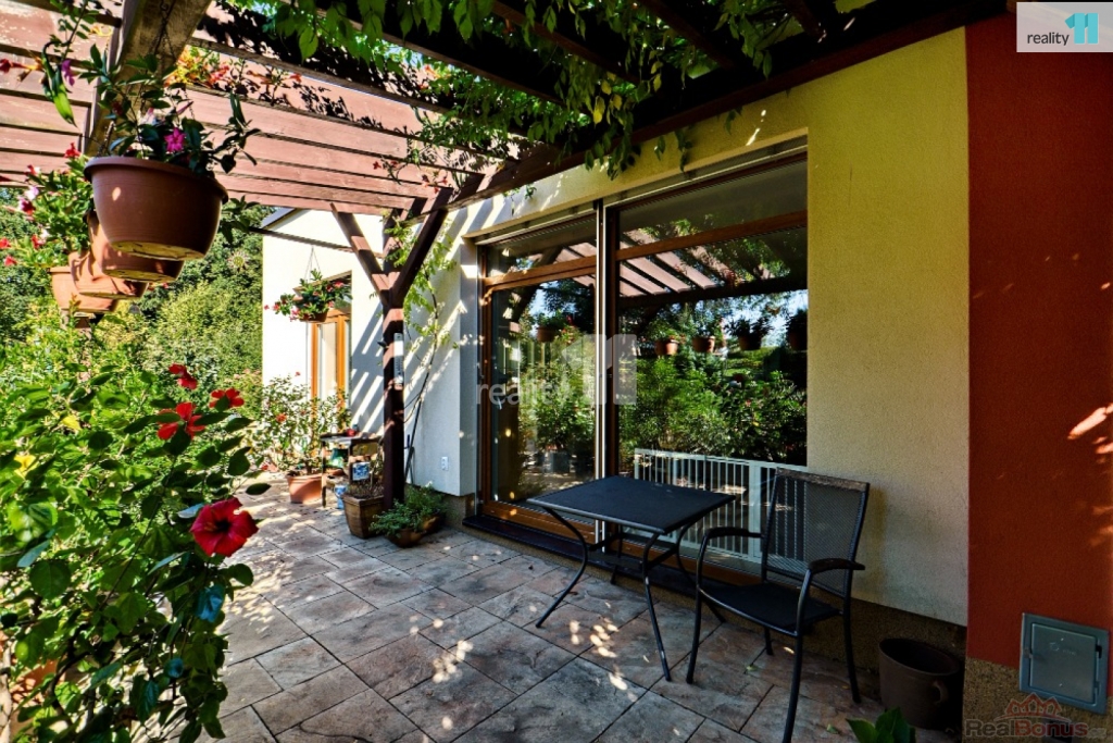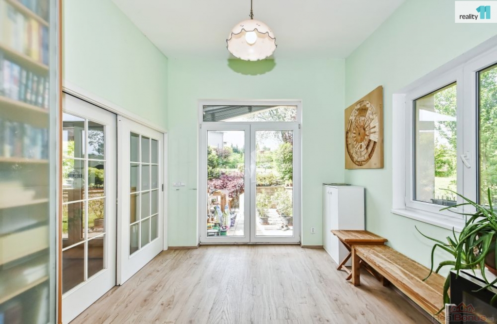 , Prodáme přízemní rodinný dům na rohové parcele v obci Tehov - místní samostatné části Hačalka nedaleko Říčan u Prahy Tato lokalita je dopravně velmi klidná, mimo hlavní komunikaci. Dům o dispozici 4+kk s velkou terasou a udržovanou zahradou se nachází na konci slepé ulice, ve které lze parkovat a zároveň v těsném sousedství lesa. Mezi zahradou a lesem je dle územního plánu biokoridor, který zajišťuje do budoucna nemožnost další zástavby. Celková plocha pozemku je 857 m, z toho zastavěná plocha činí 149 m, přičemž 123 m je plocha bytu a zbývající plocha je venkovní terasa. Dům je ve velmi dobrém stavu, dostavěn byl v roce 2015. Je napojen na elektro, vodovod a veřejnou kanalizaci. Stavba je cihlová, jednopodlažní, s tepelnou izolací obvodových stěn, střechy i základů. Střecha pultová, plechová. Okna i prosklené dveře jsou plastové, zasklení provedeno izolačním dvojsklem. Vytápění v obývacím pokoji, koupelnách a předsíni je řešeno elektrickým podlahovým vytápěním. Tři místnosti jsou vybaveny elektrickými přímotopy na noční proud, nicméně podlahové vytápění je dostačující pro vytápění celého obytného prostoru. Dalším doplňkovým zdrojem tepla jsou kachlová kamna na dřevo v obývacím pokoji. Dům je vybaven zabudovaným centrálním vysavačem. V jedné ze dvou koupelen je vana a elektrická sauna, ve druhé sprchový kout. Obývací pokoj je orientován na JZ, okna vedou do zahrady a z pokoje lze vycházet posuvným francouzským oknem na terasu a do zahrady. Podlahy v místnostech jsou vinylové, v předsíni a koupelnách je dlažba. V domě je zaveden internet (wifi), je instalována anténa a satelit. Terasa na jižní straně domu je opatřena dlažbou a dřevěnou pergolou. K domu je přistavěn dřevník a v rohu zahrady zahradní domek. Dům a terasu obklopuje mírně svažitá zahrada. Zahrada a bezprostřední blízkost Říčanského lesa je ideální jak pro rodiny s dětmi, tak i pro milovníky domácích mazlíčků. Přímo v lokalitě Hačalka je pro nejmenší k dispozici Mikešova mateřská školka s bohatým zaměřením (Montessori club, angličtina, sporty, hudba a divadlo). Pro zájemce jsou v docházkové vzdálenosti i dvě alternativní dětské skupiny v přírodě. V obci Tehov je dvoutřídní mateřská škola s běžnou a lesní třídou. Dále základní škola pro 1. stupeň, druhý stupeň je ve vedlejších Světicích. Pro děti je k dispozici velký venkovní sportovní areál, včetně dětského hřiště. V Tehově je prodejna se smíšeným zbožím, tři opravny aut, dvě truhlářství, pivnice, knihovna, kostel a aktivně zde působí občanské sdružení a spolky. Další vybavenost je v sousední obci Světice Pro děti zejména další mateřská škola, základní škola a různé kroužky a oddíl judo. Tehov je v současnosti obsloužen autobusovými linkami PID. Autobusy zajišťují spojení do Světic a Říčan. Cesta vlakem ze stanice Světice přes Říčany na Hlavní nádraží v Praze trvá cca 35 minut. Ev. číslo: 27805. Energetický štítek: E (127 kWh/m2/rok).