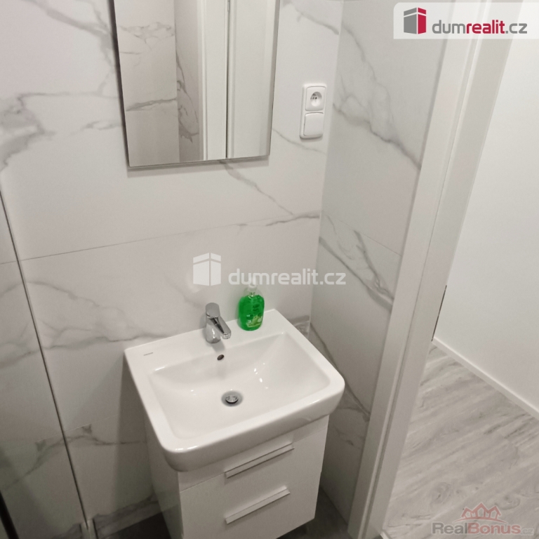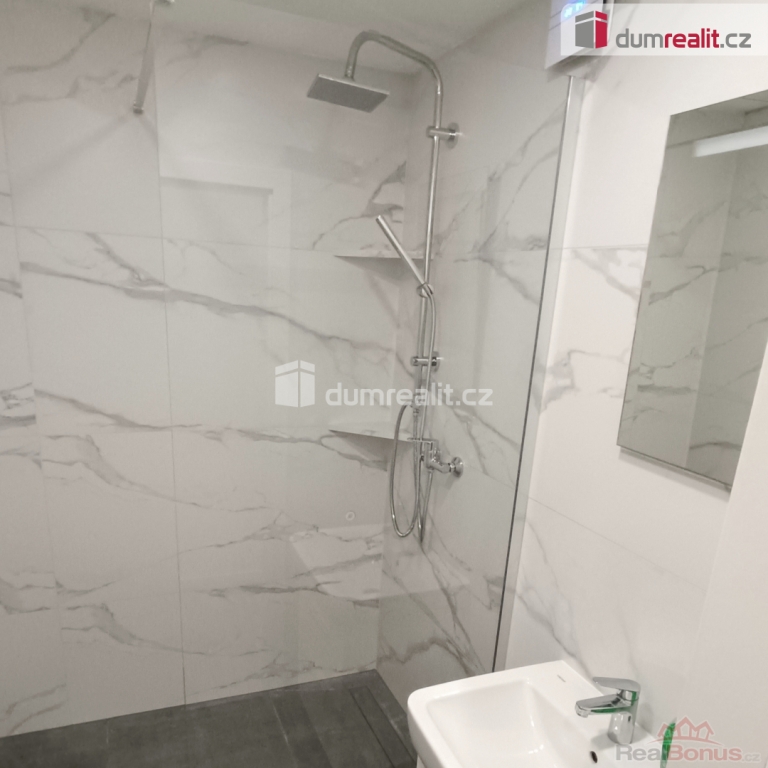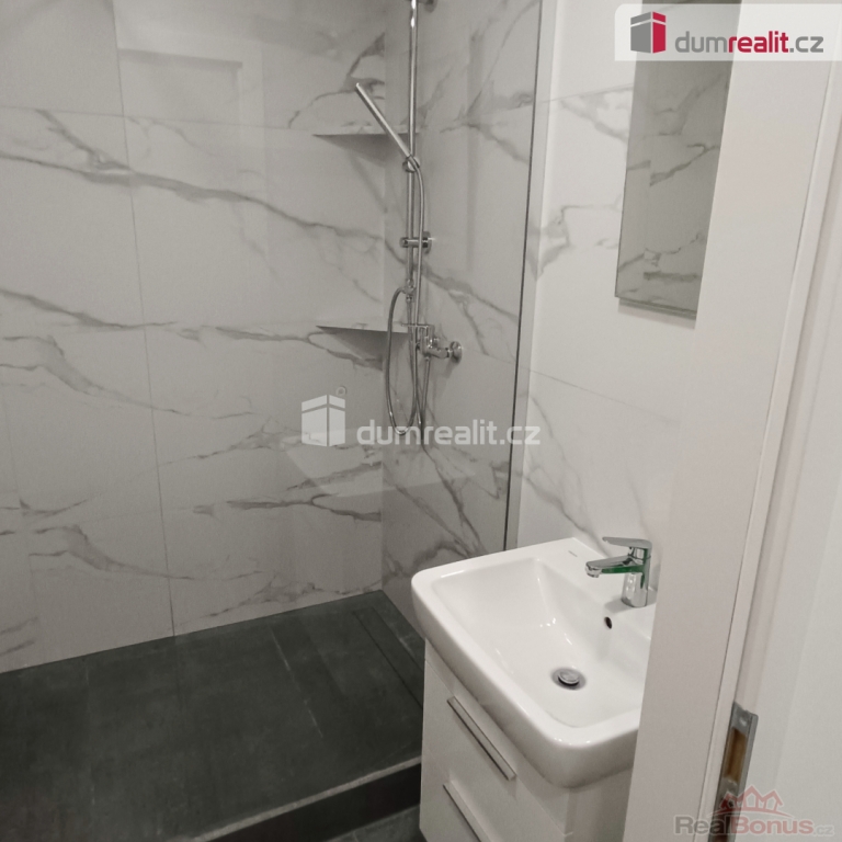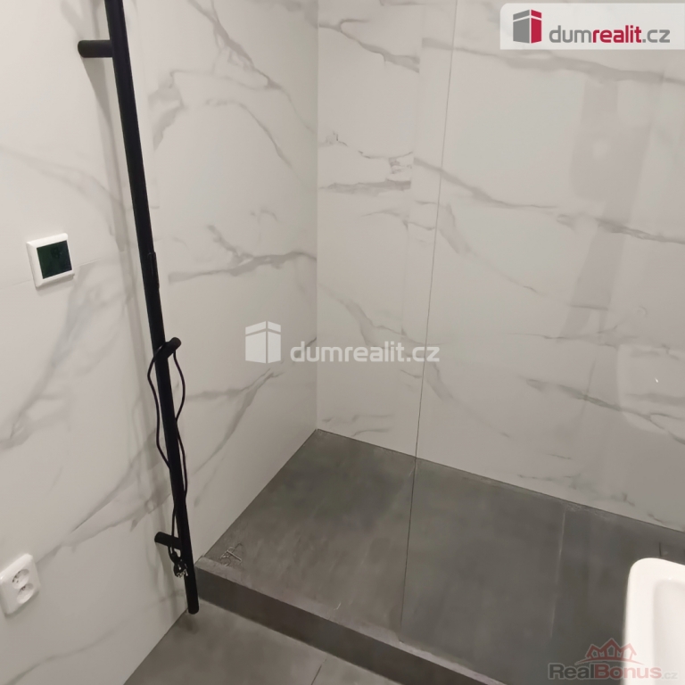 Bytové jádro je celé zděné. Toaleta samostatná. V koupelně najdete velký prostorný sprchový kout a další náležité příslušenství. K bytu přináleží, v podílovém užívání se sousedem, velká místnost, jež funguje i jako prádelna pro tento byt. Vše je v těchto prostorách připraveno pro zapojení pračky i sušičky, což se jeví jako velmi praktické. Tato místnost je uzamykatelná.