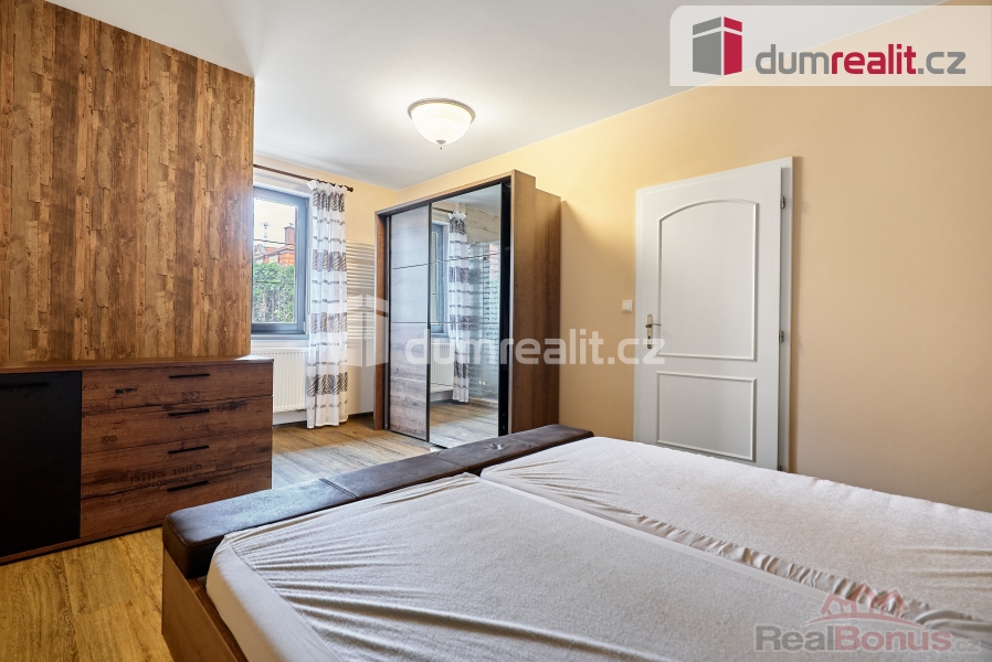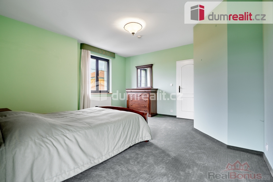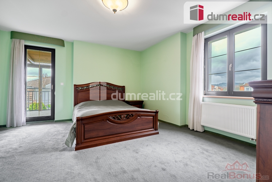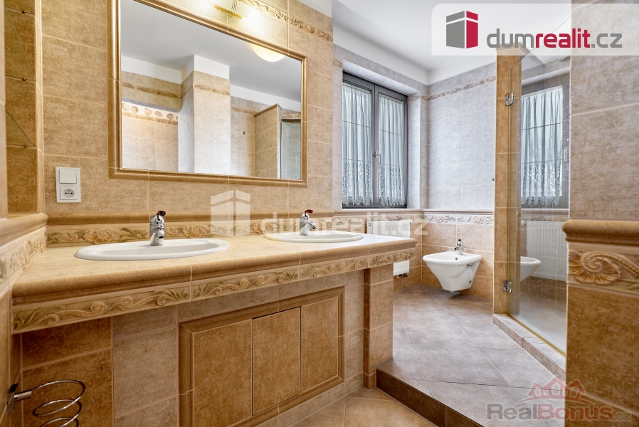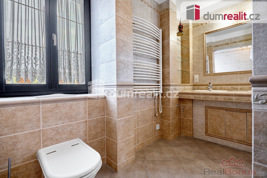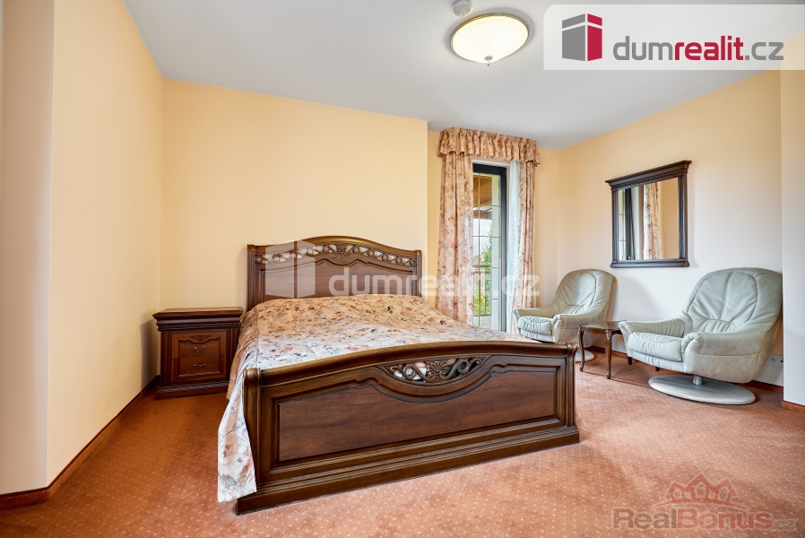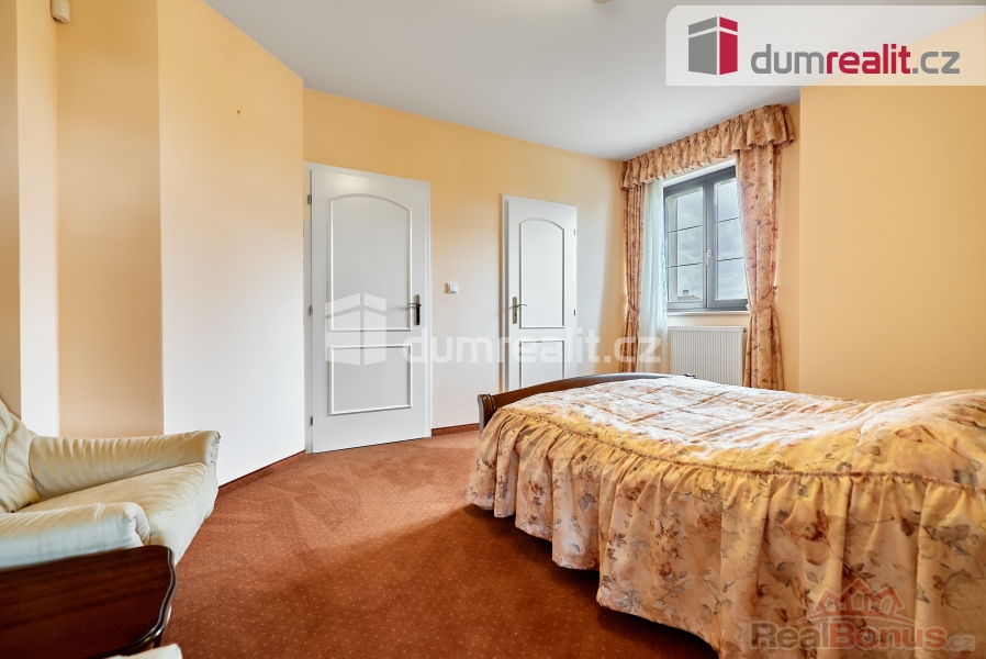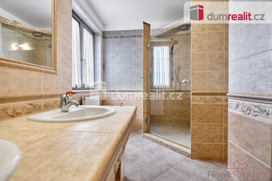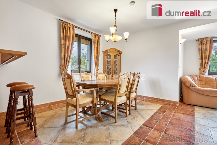 , Dumrealit.cz Vám zprostředkuje prodej rodinného domu o velikosti 5+kk s garáží, v Karlových Varech v Rybářích ,,Na Zlatém Kopečku". Dům se nachází v klidné části obce na pozemku o celkové výměře 956 m. Tento zděný nepodsklepený dům s podlahovou plochu 194 m je postaven z izolačních tvárnic Liapor + fasádní zateplení, střešní betonové tašky Bramac, dřevěná Eurookna a balkonové dveře nebo vstupní bezpečnostní dveře. V 1.NP se nachází: zádveří, chodba vč. schodiště, prostorný obývací pokoj s krbem, zimní zahradou a vstupem na zahradu. Dále kuchyně s kuchyňskou linkou na míru a vestavěnými spotřebiči, jídelní kout, ložnice vč. sprchového koutu, samostatné WC a technická místnost. V 2. NP se nachází: 3 samostatné pokoje (2 pokoje mají vstup na zastřešenou terasu, 1 pokoj disponuje vlastní šatnou), koupelna vč. sprchového koutu, WC a bidetu. Dům má také prostorné podkroví vhodné například k uskladnění věcí. Vytápění domu a ohřev vody je zajištěn novým plynovým kondenzačním kotlem (2024). Dům má vyhřívané podlahy (el. topné rohože), okenní bezpečnostní rolety, bezpečnostní systém (alarm) a samostatně stojící zděnou garáž. Pozemek je ze všech stran oplocen. Dům je vybaven a připraven k nastěhování bez dalších investic, kolaudace domu 2003. Díky ideální poloze domu máte veškerou občanskou vybavenost snadno a rychle dostupnou (školy, školky, obchody, lékař, zastávka MHD, autobusové nebo vlakové nádraží). Upravené cyklostezky, turistické trasy nebo nedaleké lyžařské areály vám umožní bohaté celoroční sportovní vyžití. Tuto nemovitost lze hradit hypotečním úvěrem, který Vám rádi pomůžeme vyřídit v našem hypotečním centru. Vzhledem k tomu, že před zadáním do inzerce nebyl vyhotoven PENB, je tento dům v souladu s platným zákonem zařazen do energetické třídy G. Ev. číslo: 646617. Energetický štítek: G