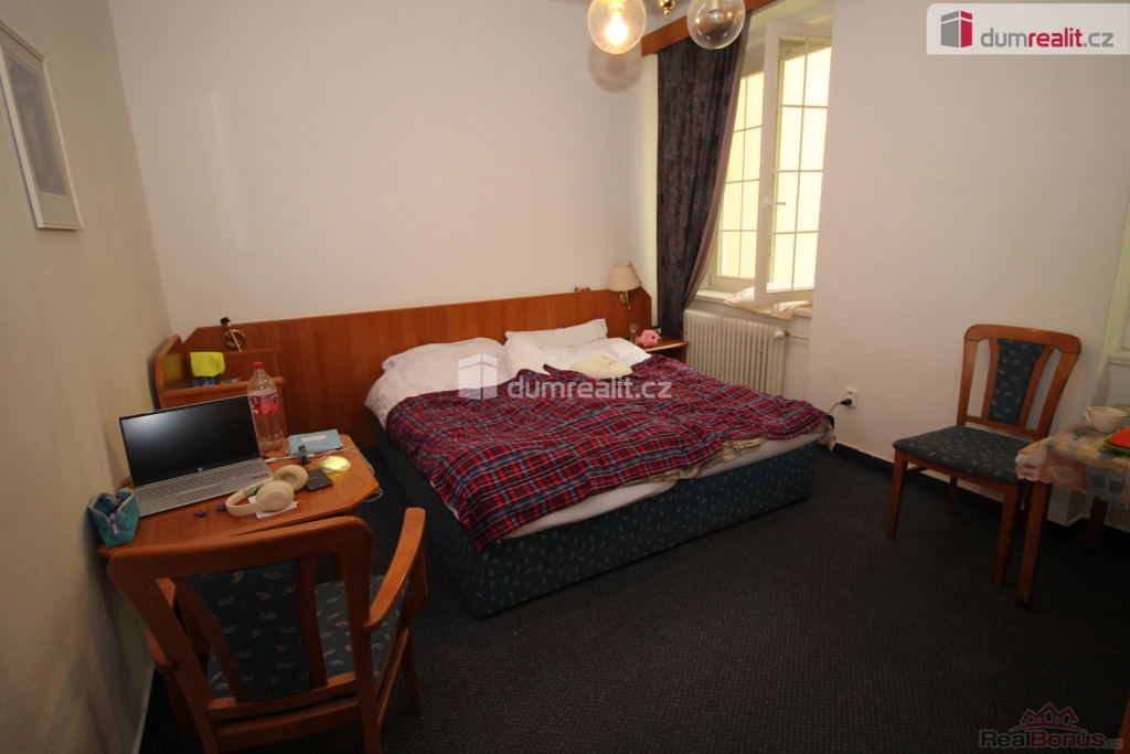 , Dumrealit.cz Vám zprostředkuje koupě krásné cihlové vily v Anglické ulici v centru Mariánských Lázní vhodné k provozování pensionu, hotelu, ubytovny či dlouhodobých a krátkodobých pronájmů. Pozemek obklopující dům o celkové rozloze 952 m nabízí útulnou zahradu jak před tak za domem, zastavěná plocha je 366 m. Vila prošla revitalizací fasády, jsou zde nová okna, v objektu je výtah. Celková plocha objektu je cca 1400 m s tím, že je zde celkem 24 apartmánů ve čtyřech podlažích plus půda. Každý pokoj má své sociální zařízení, koupelnu, toaletu. Na podlahách jsou koberce, pokoje jsou vybavené nábytkem. Na patře je vždy navíc samostatné WC, v přízemí pak je několik technických místností, kotelna, kuchyně, společná místnost. Do objektu jsou zavedeny inženýrské sítě včetně vodovodu, kanalizace, elektřiny a plynu. Vytápění je zajištěno skrze městskou teplárnu, tedy centrálně. Do domu vedou dva vchody, je zde terasa, několik balkonů. Parkování je možné jak na pozemku tak v ulici a na přilehlém parkovišti naproti objektu. Nemovitost je prosta jakýchkoli věcných břemen či právních omezení. V místě je krásný klid, dům obklopuje veřejná zeleň a městské parky. V Mariánských Lázních je veškerá občanská vybavenost včetně úřadů, bank, restaurací, obchodů, škol, jsou zde supermarkety LIDL, PENNY, TESCO, Kaufland, BILLA, DM, Planeo elektro, JYSK, super ZOO, TAKKO, KIK, Deichmann. Mariánské Lázně jsou úžasné místo pro život i odpočinek, jsou prošpikované sítí turistických, cyklistických a běžkařských tras. Sportovcům je k dispozici plavecký bazén, sportovní areál Viktorka, zimní stadion pro bruslaře, lyžařská sjezdovka s lanovkou, tenisové kurty, v létě je v provozu koupaliště Lido s písečnou pláží. Úžasné městské parky nabízí krásná zákoutí: Kolonádu se zpívající fontánou a přilehlý labutí park, Ferdinandův pramen, Lesní pramen, Rudolfův pramen, Medvědí pramen, Geologický park, obůrku Hvozd s daňky a jeleny. V dosahu do 25 km jsou přírodní rezervace a turistické cíle: rašeliniště a naučná stezka Kladská, přírodní rezervace Smraďoch a Vlček, státní zámek Bečov, státní zámek Kynžvart, hrad a krásné město Loket, klášter Teplá, blízké klimatické Lázně Kynžvart, Krakonoš, rozhledna Hamelika, nejvyšší vrchol Slavkovského lesa Lesný (983 m) kudy vede mezinárodní evropská dálková turistická trasa E3. Mariánské Lázně jsou na seznamu světového kulturního dědictví UNESCO, skýtají klid lázeňského města se zdravou vodou a čistým ovzduším. Mariánské Lázně se nacházejí v blízkosti německých hranic, tedy je vhodné pro ty, kteří tam hledají pracovní uplatnění. Cena zahrnuje provizi RK a veškerý právní servis. V případě potřeby zajištění financování Vám rádi doporučíme naše prověřené hypoteční specialisty. Ev. číslo: 652627. Energetický štítek: G (150 kWh/m2/rok).
