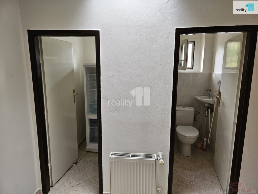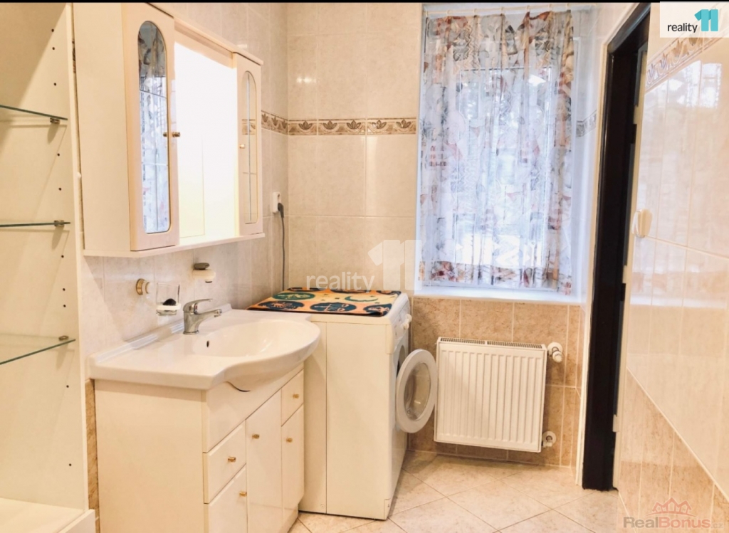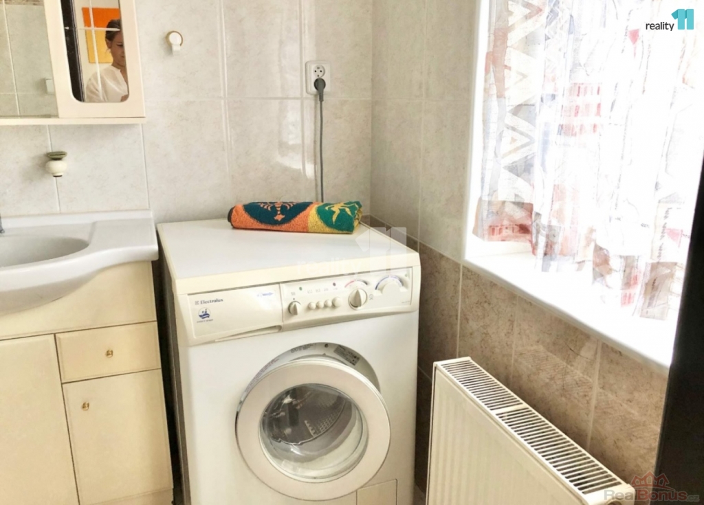 Koupelna se sprchovým koutem, pračka vč. sušičky, špajz vč. lednice/mrazáku. WC samostatné.