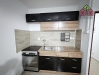 Vstup do bytu s podlahovou plochou 35,4 m2 tvoří menší chodba s přístupy do obývací části a do koupelny. V obývací části je umístěn kuchyňský kout s linkou a elektrickým sporákem se sklokeramickou varnou deskou a jídelní stůl se židlemi. Prostor je však variabilní, lze sem umístit i menší sedací soupravu či počítačový kout. Další pokoj s dveřmi v posuvu je možné využívat jako obývací či spací část. Opět lze toto uspořádání změnit dle potřeb a přání nového nájemce bytu.