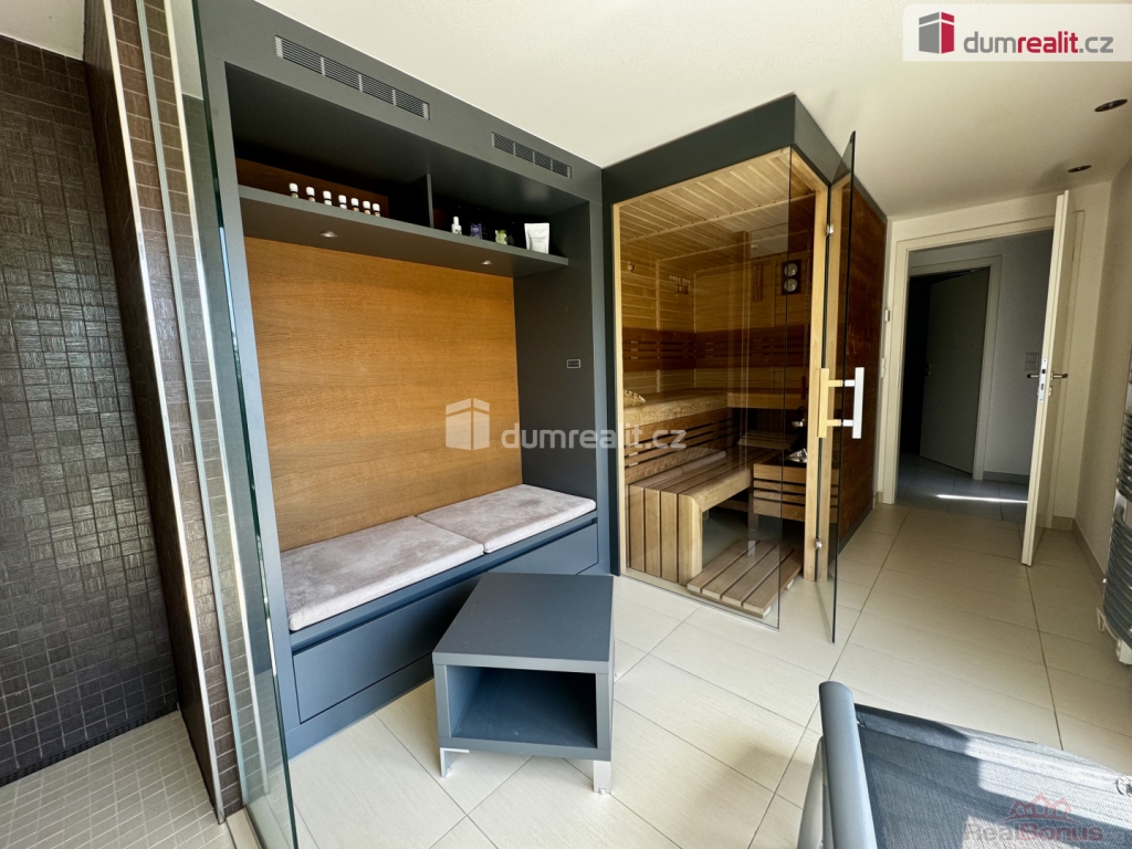 Suterén (45 m): tělocvična, technická místnost, sauna s odpočinkovým prostorem a sprchou