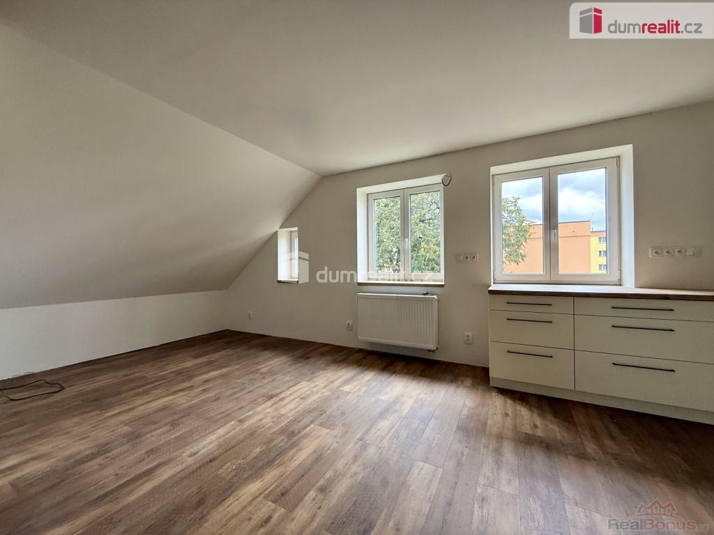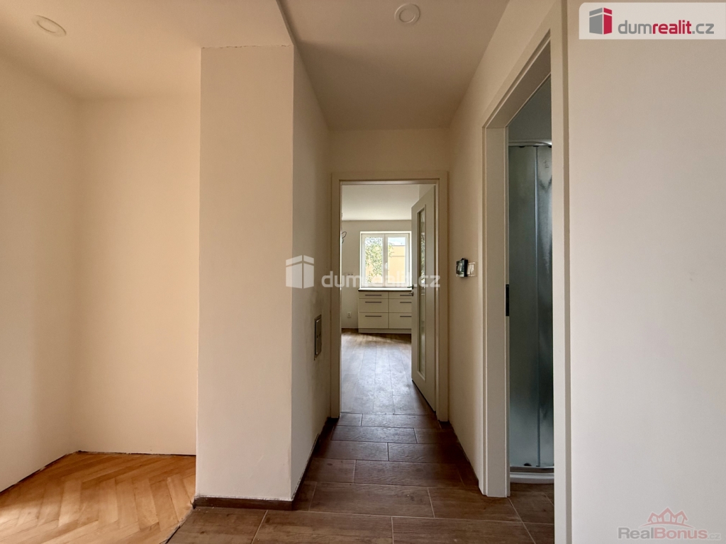 Nové sádrokartonové stropy včetně zateplení. Nové štukové omítky a nově vymalováno.