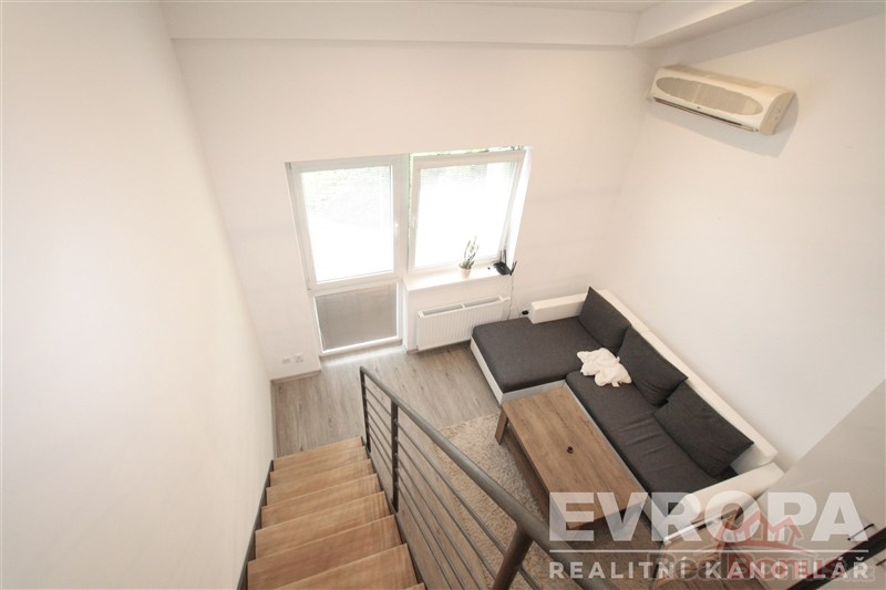 Nabízíme k pronájmu moderní zařízený byt mezonet, dispozice 2+kk, plocha 42m2, po kompletní rekonstrukci 2021, dům z roku 2008. Nachází se ve 2NP. nízkopodlažního domu. Byt se skládá z předsíně s vestavěnou skříní, prostorného a světlého obývacího pokoje, s prostorem odděleným na jídelní a kuchyňský kout a obývací část, kuchyňská linka se zabudovanými elektrickými spotřebiči elektrická trouba, sklokeramická varná deska, digestoř. Ve vrchním patře je ložnice (galerie) prostor na spaní, kde je umístěné manželské dvoulůžko. Koupelna se sprchovým koutem, toaletou a pračkou. Na podlaze plovoucí podlaha a dlažba. Vytápění a ohřev teplé vody centrálním plynovým kotlem, v ceně je připojení k internetu přes WIFI. Nájemné je ve výši 21000,Kč + 4000,Kč kompletní paušální poplatky za služby a energie. Jedná se o krásný, světlý byt, který zaručeně nadchne zájemce, který má rád atypické a moderní bydlení. Vzhledem k otevřené dispozici bytu je byt vhodný a pronajímatel preferuje ideálně 1 osobu (max dvě osoby v případě páru) a bez domácích zvířat. Dům je pěší dostupností na MHD a v lokalitě je kompletní občanská vybavenost. K nastěhování volný od 15. října 2025.