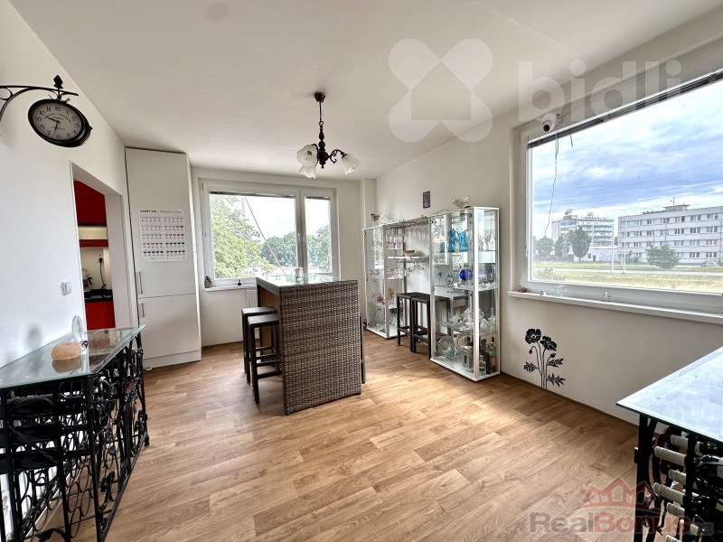 Dispozice bytu byla původně 5+1, aktuálně je řešena jako prostorné 4+1, přičemž návrat k původnímu řešení je bez problémů možný. K bytu náleží balkon, který zajišťuje dostatek světla. Součástí je rovněž sklepní kóje.