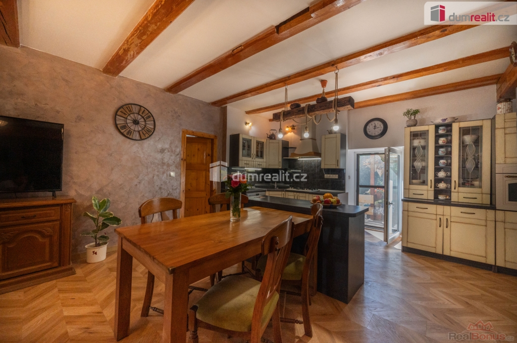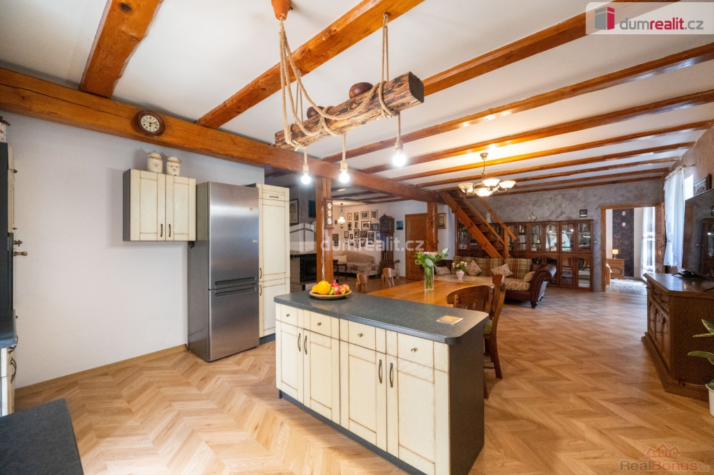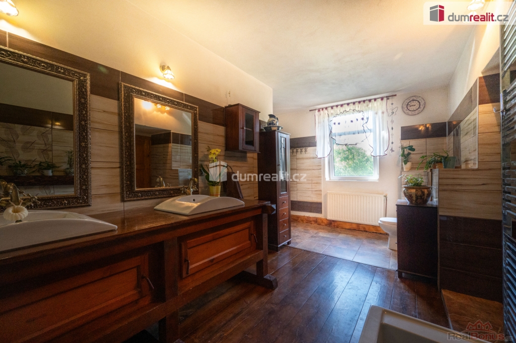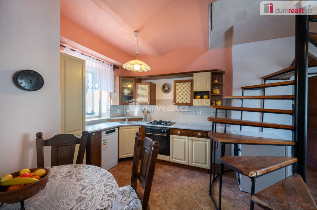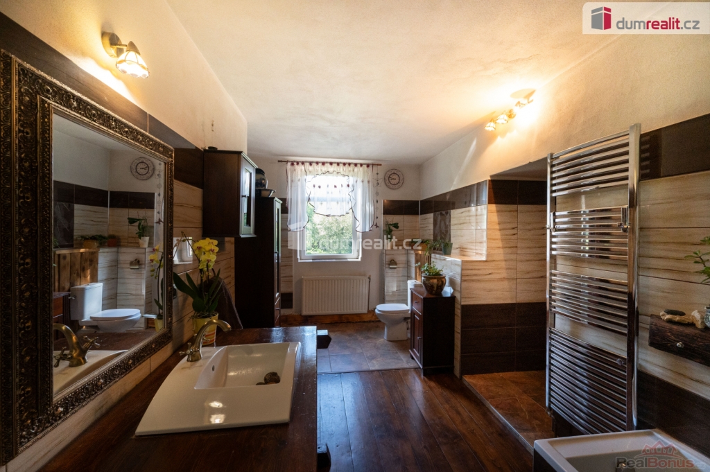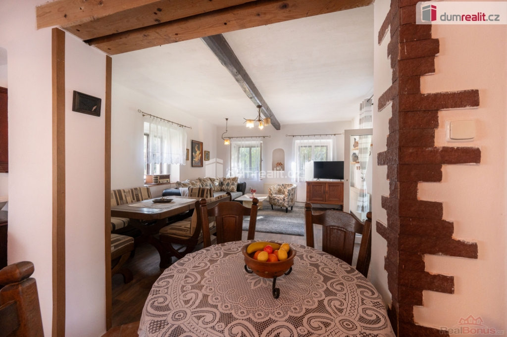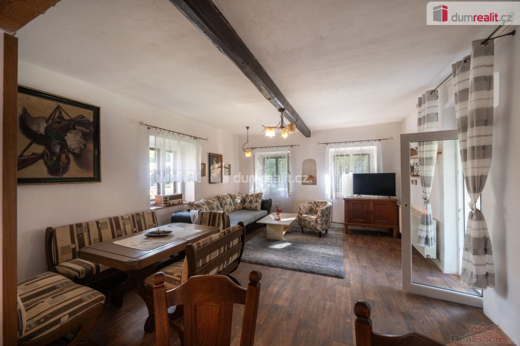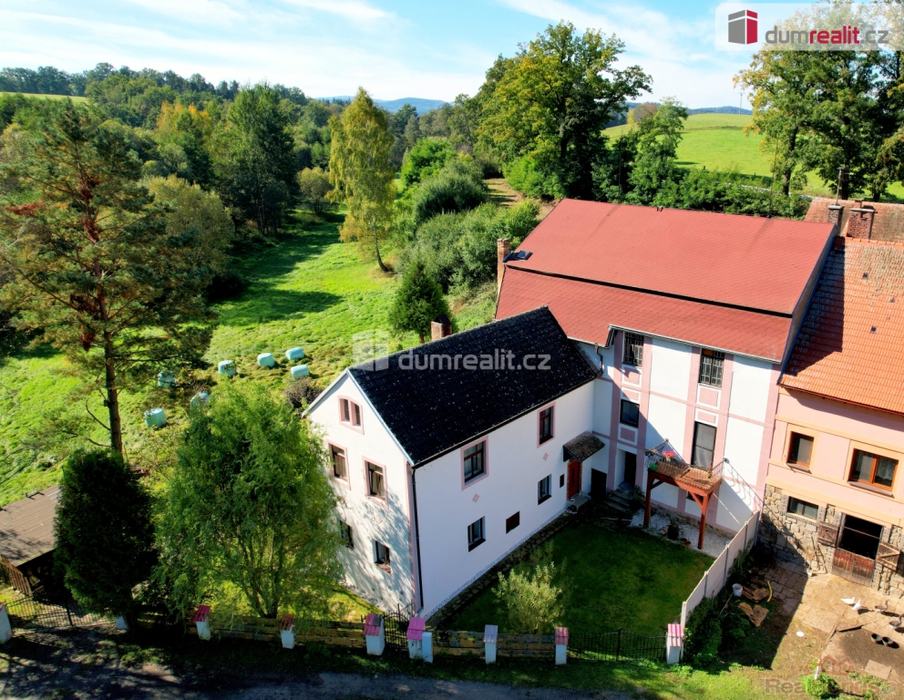 Vytápění je kombinované: 1) centrální zplynovací kotel se zásobníkem na uhlí nebo pelety; 2) lokální krbová vložka (vzduch-vzduch). Průměrná roční spotřeba uhlí je 35 m3 + dřevo do krbu na přechodné období je 10 m3. Ohřev teplé vody je za pomoci elektrických bojlerů. Objekt má vlastní studnu. Kanalizace je řešena septikem. Bývalý mlýn nabízí široké možnosti využití. Hlavní dům je prostorný, má terasu, garáž, sklep a vlastní studnou. K domu navíc patří vedlejší malý domek, který lze využít jako výměnek nebo k ubytování hostů. Velký potenciál skrývá půda hlavního domu, kde je možné vytvořit další bytovou jednotku nebo ateliér. Nemovitost se nachází v klidné lokalitě, která poskytuje dostatek soukromí. Je ideální pro ty, kteří hledají kombinaci klidného bydlení a možnosti podnikání. Více informací Vám poskytne realitní makléř Tomáš Pelda z realitní kanceláře A TEMPO fungující pod ochrannou známkou dumrealit.cz. Ev. číslo: 649017. Energetický štítek: G