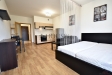 Byt disponuje předsíní vybavenou šatní skříní, koupelnou se sprchovým koutem, WC a pračkou. Obytná místnost s kuchyňskou linkou zahrnuje elektrospotřebiče, jako je elektrická trouba, sporák, lednice s mrazákem a digestoř. V místnosti je také jídelní stůl, pohovka, televize a vstup na balkón. Součástí vybavení jsou bezpečnostní dveře, protipožární systém a žaluzie. K dispozici je rovněž možnost vysokorychlostního internetu.