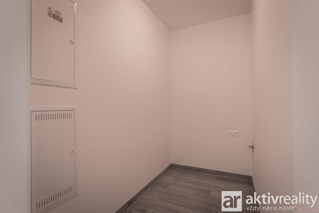 Dále jsou zde dvě prostorné chodby s vestavěnou skříní, čtyři pokoje, dvě koupelny s vanou a toaletou, samostatná toaleta s umyvadlem, technická místnost. Možnost pronajmout další garážové stání za poplatek. V 8. patře je společná terasa a k dispozici je recepce.