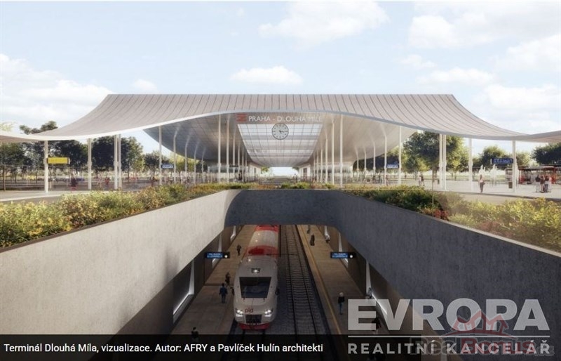 5 minut od budoucí vlakové stanice do centra a i na letiště Dlouha Míle.