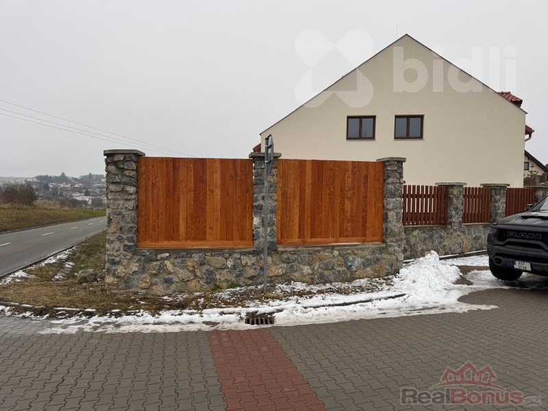 K domu náleží zahrada, garáž, parkovací stani, technická místnost, 4 samostatné pokoje a kuchyň se spižírnou.