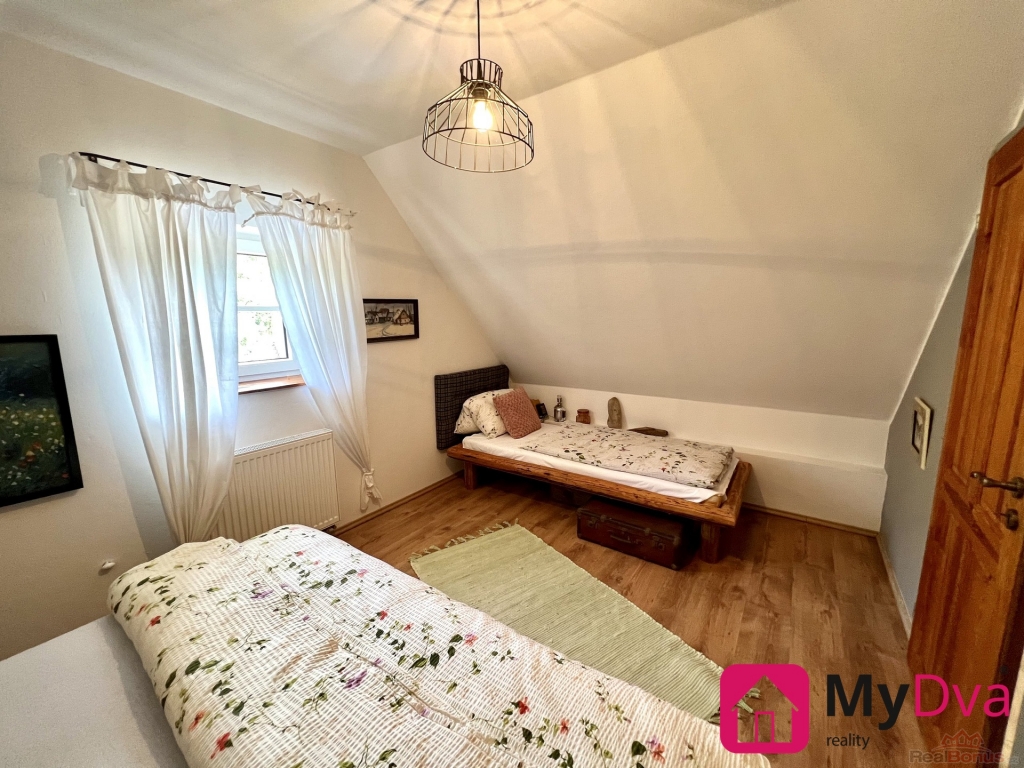 Byt č. 2: Byt v prvním patře je obdobně řešený. Skládá se z předsíně obývacího pokoje, kuchyně, a ložnice, koupelny a WC.