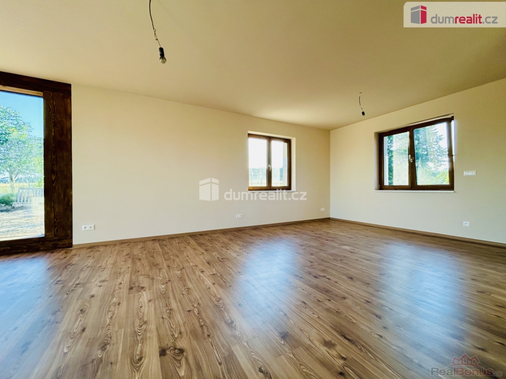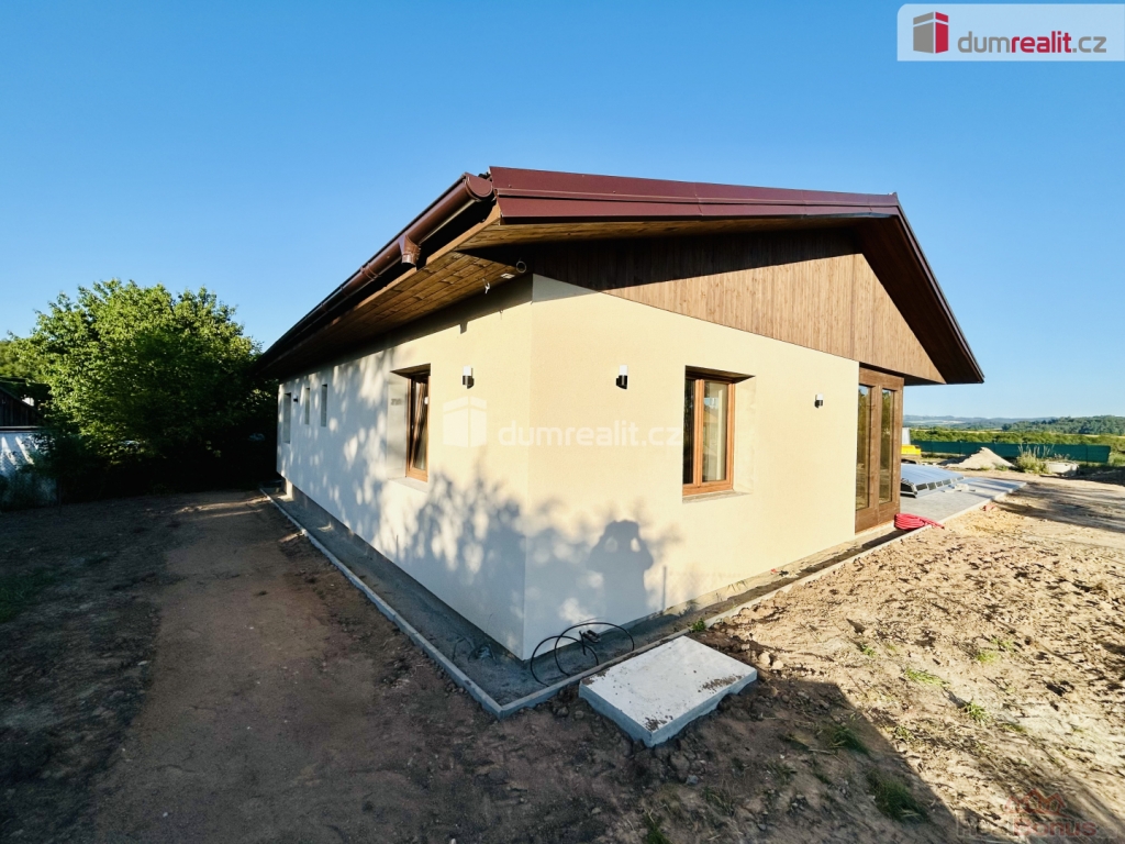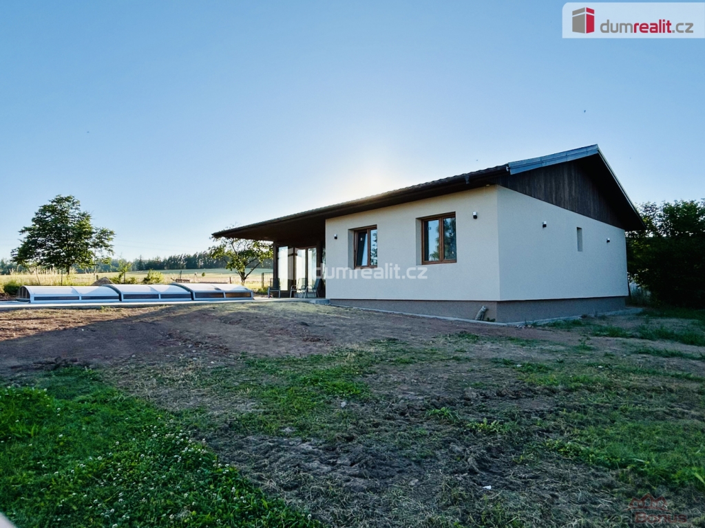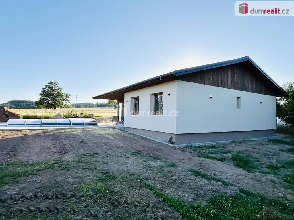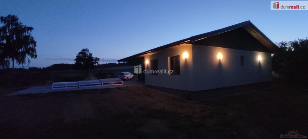 , Dumrealit.cz Vám zprostředkuje prodej novostavby rodinného domu v obci Zvěstov, část obce Vlastišov o dispozici 4kk a užitné ploše 120 m. Spádová obec Zvěstov je cca 2 km a je zde obchod smíšeného zboží. Novostavba se nachází na vlastním pozemku o výměře 1407 m na okraji obce.K výstavbě bylo použito zdivo Wieneberger 30 cm + 10 cm zateplení pomocí polystyrenu. Střecha - krov - sbíjený vazník, plechová střešní krytina Satjam. Stropy sádrokartonové, zateplené minerální foukanou izolací 30 cm. Okna od české společnosti Jis , trojsklo, masivní dřevěná okna rovněž trojsklo s bezpečnostní fólií. Voda do domu přivedena z vlastní vrtané studny hluboké 50 m a vydatností 300 l/ hod, splašková voda svedena do septiku. Vytápění řešeno tepelným čerpadlem s rozvodem do podlahy v kombinaci s krbovou vložkou. U domu venkovní terasa o výměře 25 m na níž navazuje přístup k bazénu o rozměrech 6x3 m se zastřešením, jehož příslušenstvím je noční osvětlení. Terasa a pochozí část kolem bazénu vydlážděna zámkovou dlažbou. Na RD bude namontován kamerový systém s dálkovým přístupem přes aplikaci a elektronické zabezpečovací zařízení. Pozemek je oplocený s přístupem z obecní komunikace.