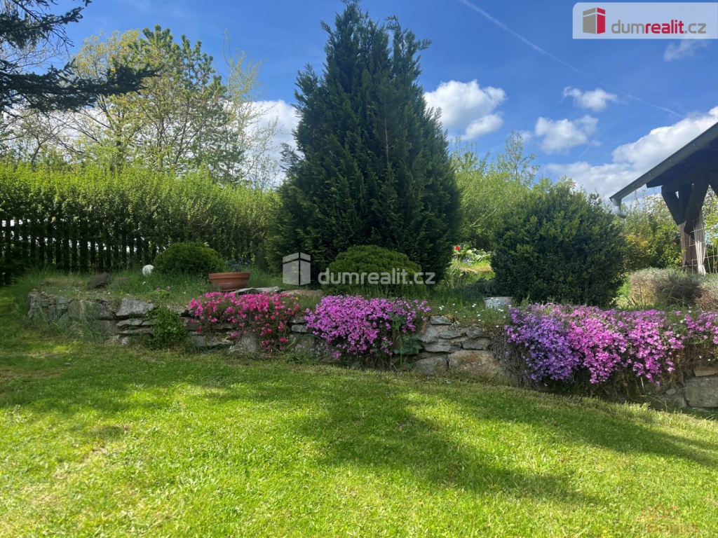 Součástí nabídky je krásná a udržovaná zahrada osázená stromy a keři, která poskytuje dostatek prostoru pro relaxaci, dětské hry i zahradničení. Na zahradě se nachází pergola pro příjemné letní posezení. Okolní příroda a výhled do lesů dodávají domu jedinečnou atmosféru klidu a pohody. Dům má evidenční číslo, ale parcela je dle územního plánu určená k výstavbě rodinných domů.
