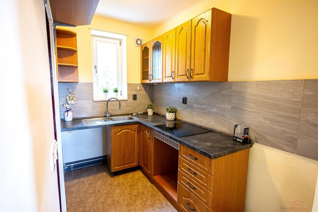 - oddělená kuchyně s kuchyňskou linkou - je zde indukční deska, po dohodě bude dodána nová myčka a el. trouba, přip. i starší lednice