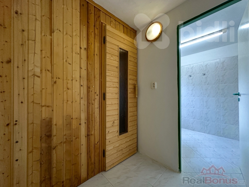 V přízemí vás uvítá prostorný obývací pokoj s krbovými kamny a vstupem do jídelny a kuchyně, která je plně vybavena a má příjemný výhled do zeleně. Nechybí ani koupelna s vanou a samostatné WC. V patře najdete několik ložnic, další koupelnu a dostatek úložného prostoru. Součástí domu je také sauna - ideální pro odpočinek po dlouhém dni - a prostor s přípravou na krytý bazén, který lze dokončit podle vlastních představ. V přízemí je technická místnost, a prostory pro další využití jako například wellness, fitness, kancelář atd. Vytápění je řešeno tepelným čerpadlem (země - voda), elektrokotlem vč. přímotopů jako záložními zdroji. Podlahové topení v každé místnosti nabízí optimální tepelný komfort. Ohřev vody zajišťují solární panely vč. spolupráce s tepleným čerpadlem. Dům je zateplený s odvětrávanou fasádou.