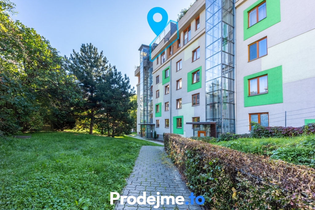 Velkým bonusem tohoto bytu jsou dvě prostorné terasy s dřevěným obložením. Severní terasa o 14,5 m2 je ideální pro klidné posezení ve stínu, jižní o velikosti 18,2 m2 vám zase dopřeje slunce po celý den. Můžete si tak vybrat podle nálady i denní doby. Kromě relaxace na čerstvém vzduchu ocení nadšení pěstitelé i malý skleník a truhlíky s automatickou závlahou, které dotvářejí příjemnou atmosféru.