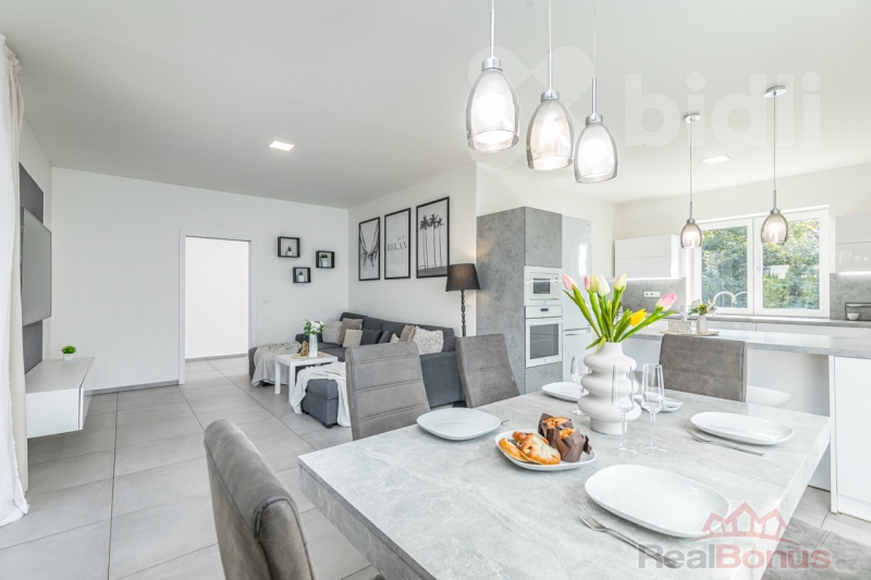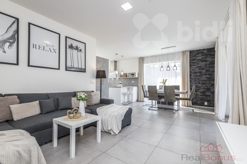 Celková podlahová plocha domu činí 131 m2 a pozemek má výměru ideálních 863 m². Dům je postaven z kvalitních materiálů, interiér byl navržen bytovou designérkou s důrazem na funkčnost i estetiku. Dispozice je vhodně řešena pro rodinné bydlení.